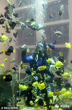 可以确定的是,昨天住在酒店里的人,后半辈子看到大型水族箱估计都会绕道走了...