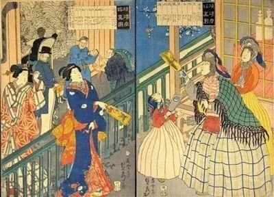 反映江户时代末期到明治维新日本妇女服饰变迁的浮世绘。