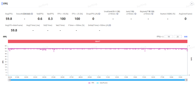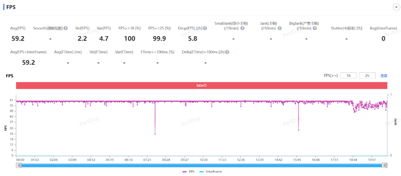 不过20分钟的原神手游,平均帧率能够维持在59.2FPS,也算比较不错的水平。