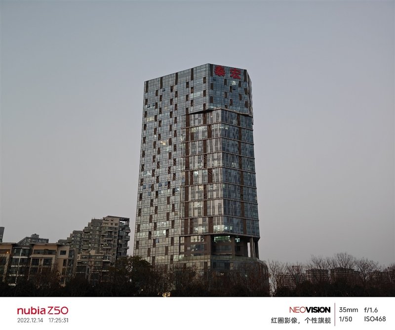 6400万像素的索尼IMX787主摄,在白天场景下,努比亚Z50凭借着35mm焦段的主摄,成像画面非常的纯净,相比标准的24mm焦段,更长的焦段更能展现出画面的主体,在拍摄高大的建筑物时,凸显出光影在各种材料上的质感。