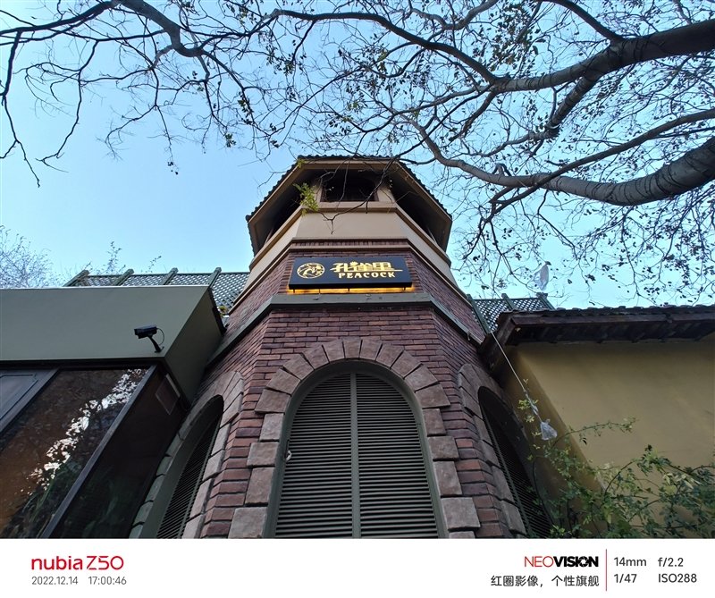 努比亚Z50的超广角镜头也支持夜景模式,116°的大视角,日常可以满足记录大场景的需要,在色彩的展现与曝光的控制上,与主摄没有拉开太大的差距。