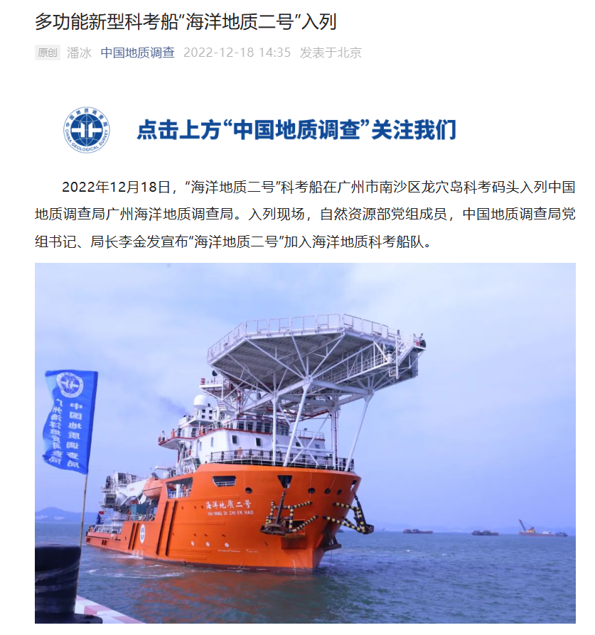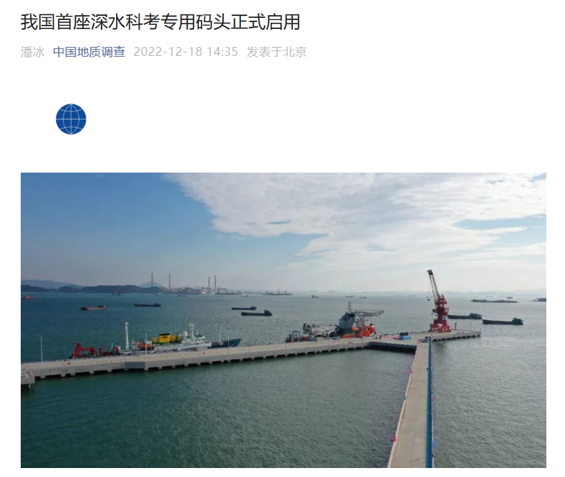 IT之家了解到,同日,“海洋地质二号”多功能新型科考船缓缓抵靠中国地质调查局广州海洋地质调查局科考码头,标志着我国首座深水科考码头,也是国内规模最大的科考专用码头正式启用,我国深海探测基地保障能力进一步提升。