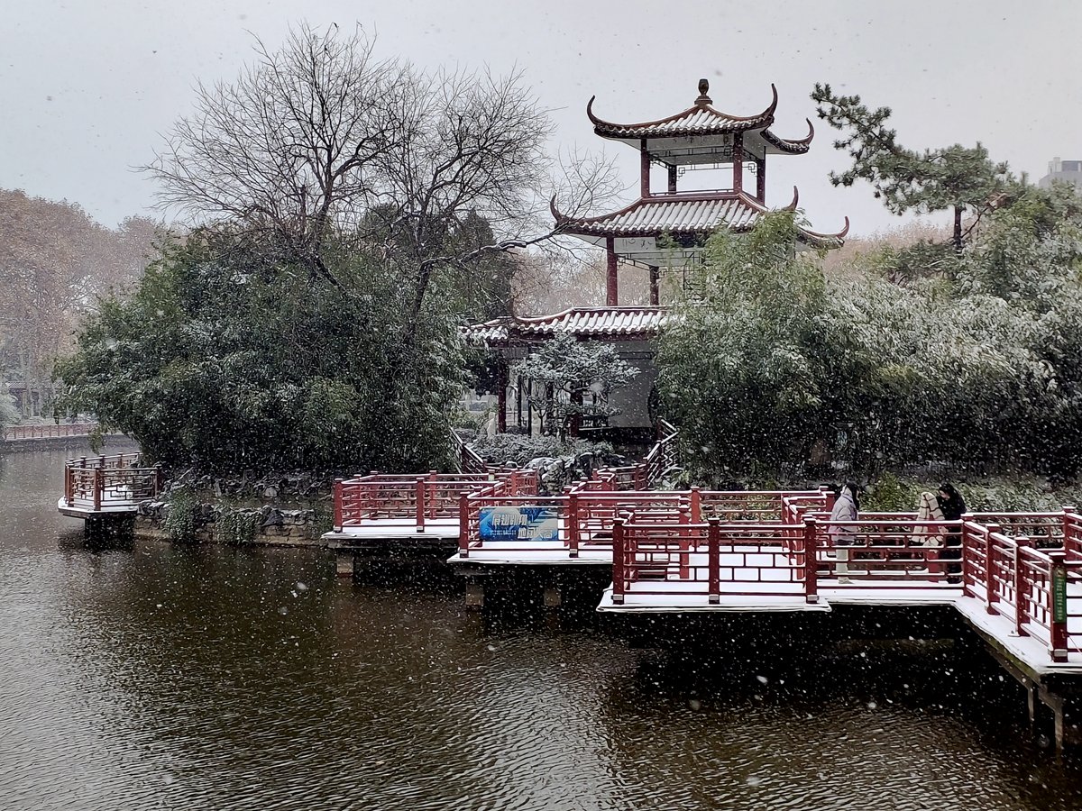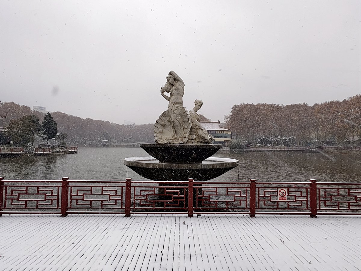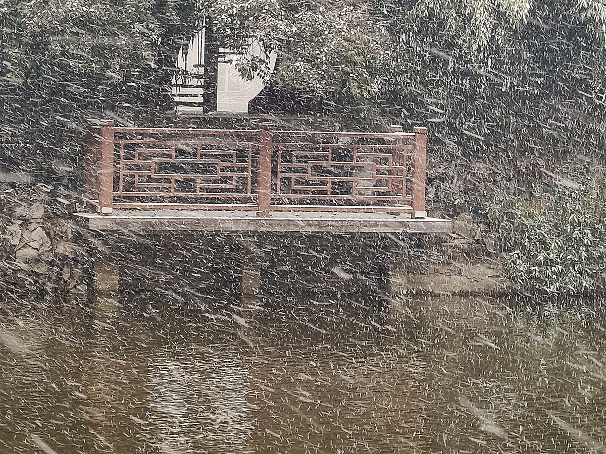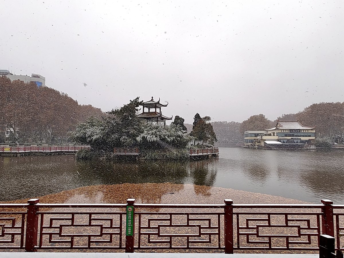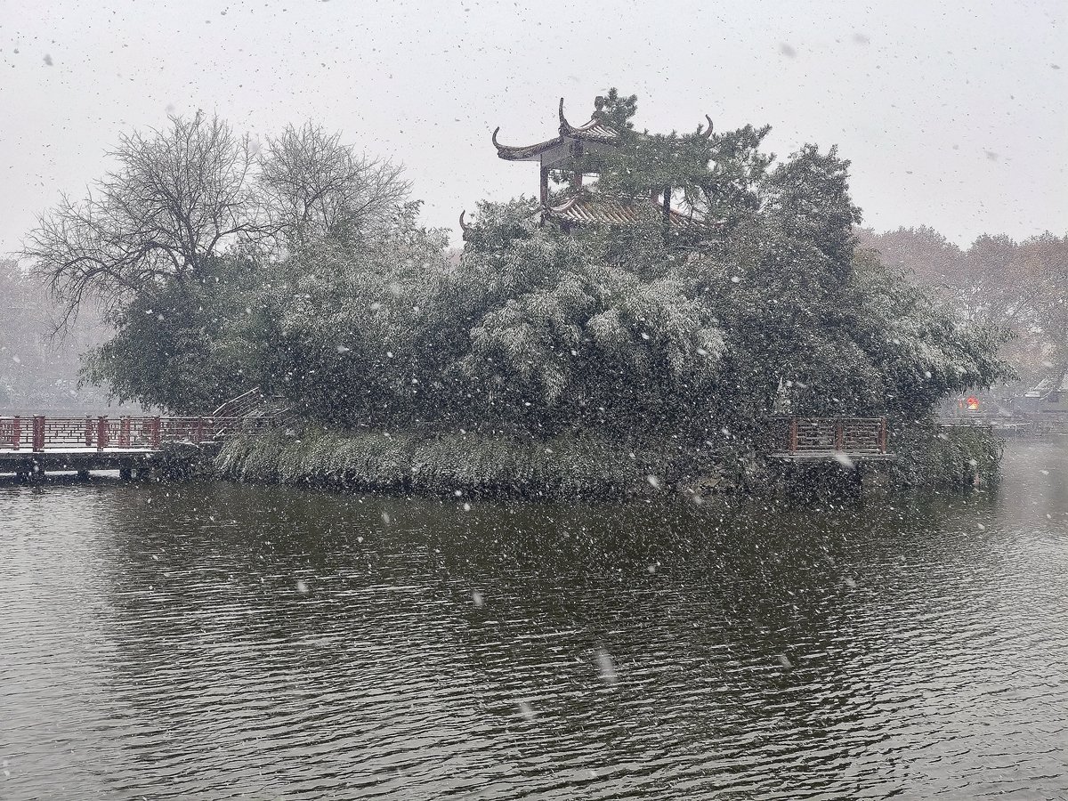 2022年12月16日,珠城大雪纷飞,珍珠女在津浦大塘听雪。