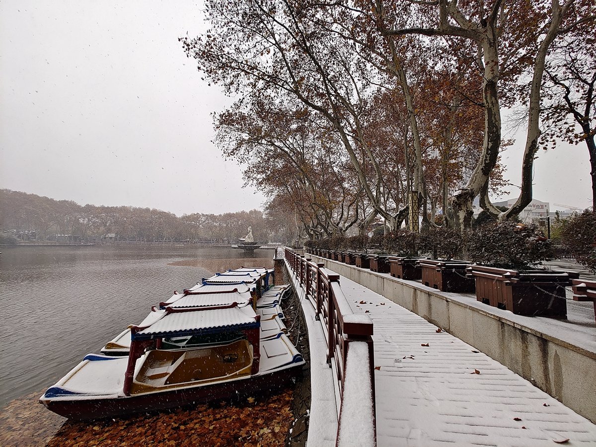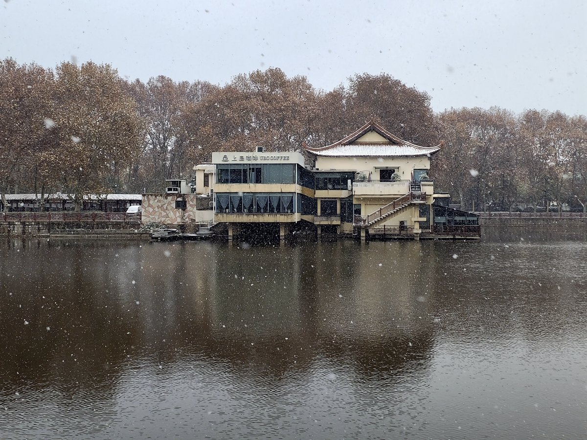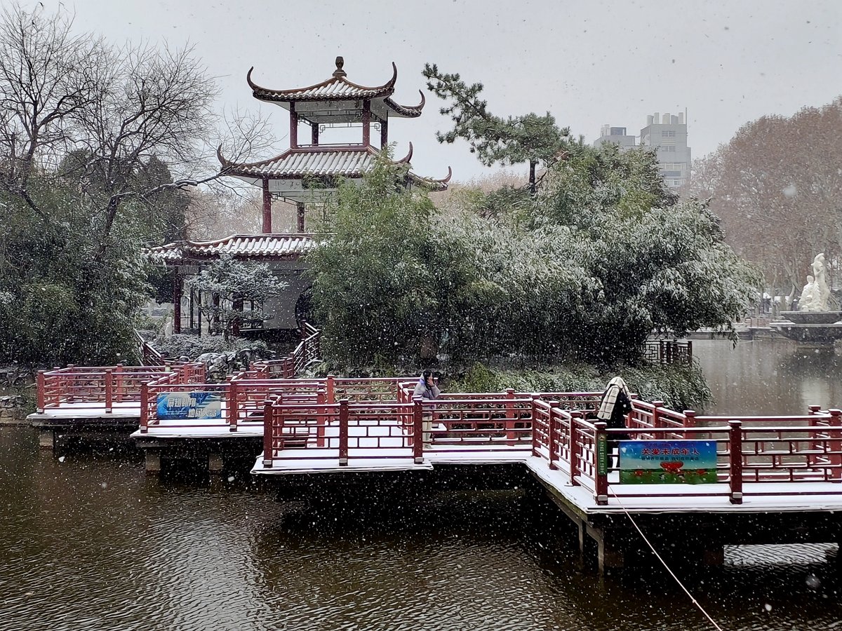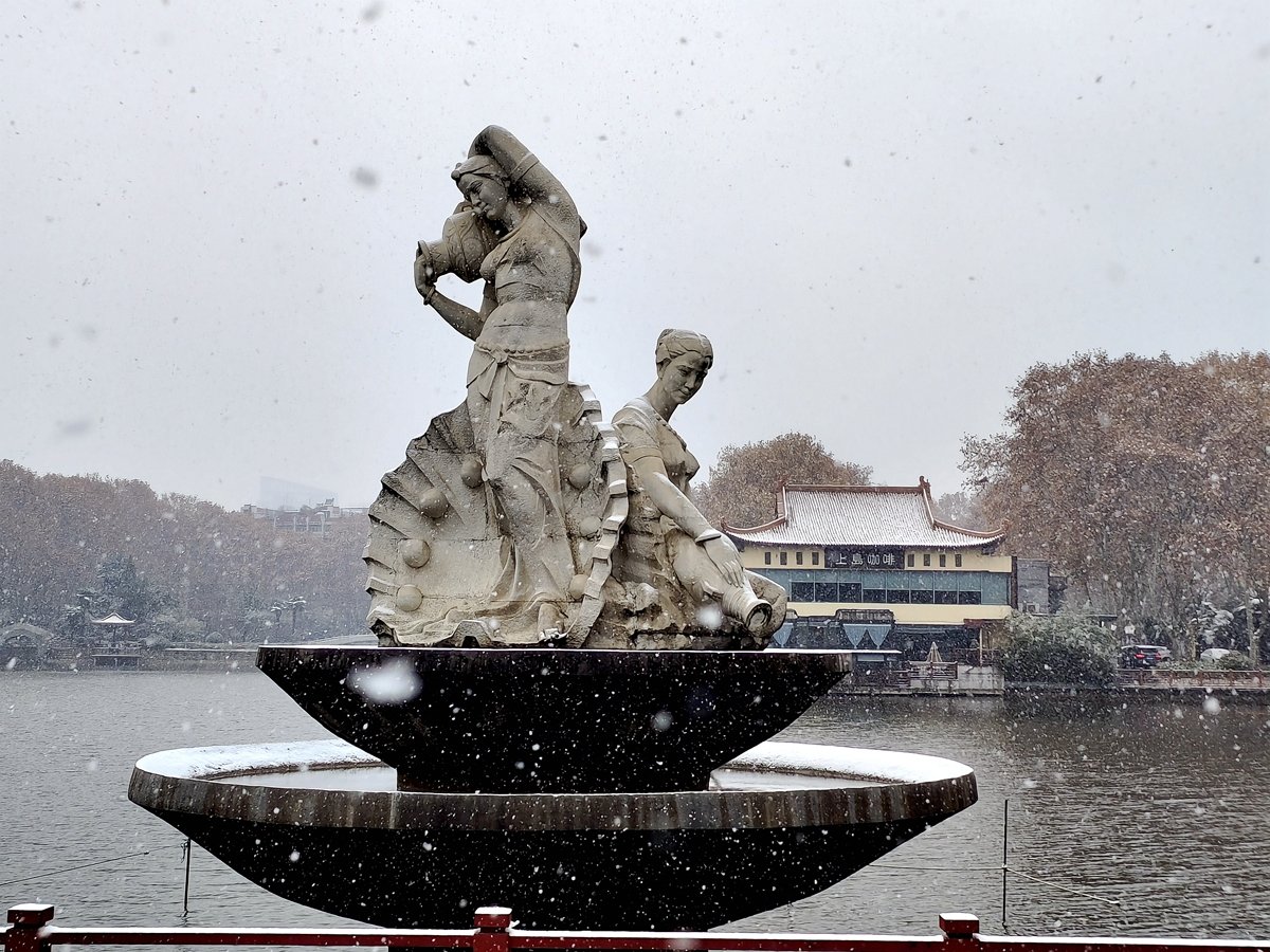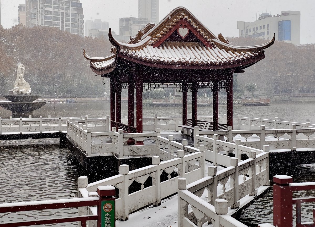 2022年12月16日,珠城大雪纷飞,珍珠女在津浦大塘听雪。