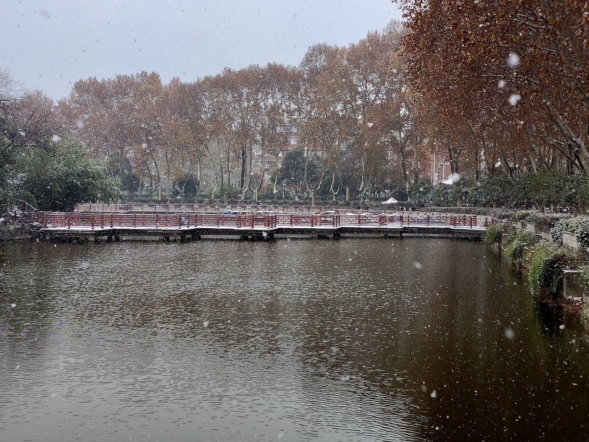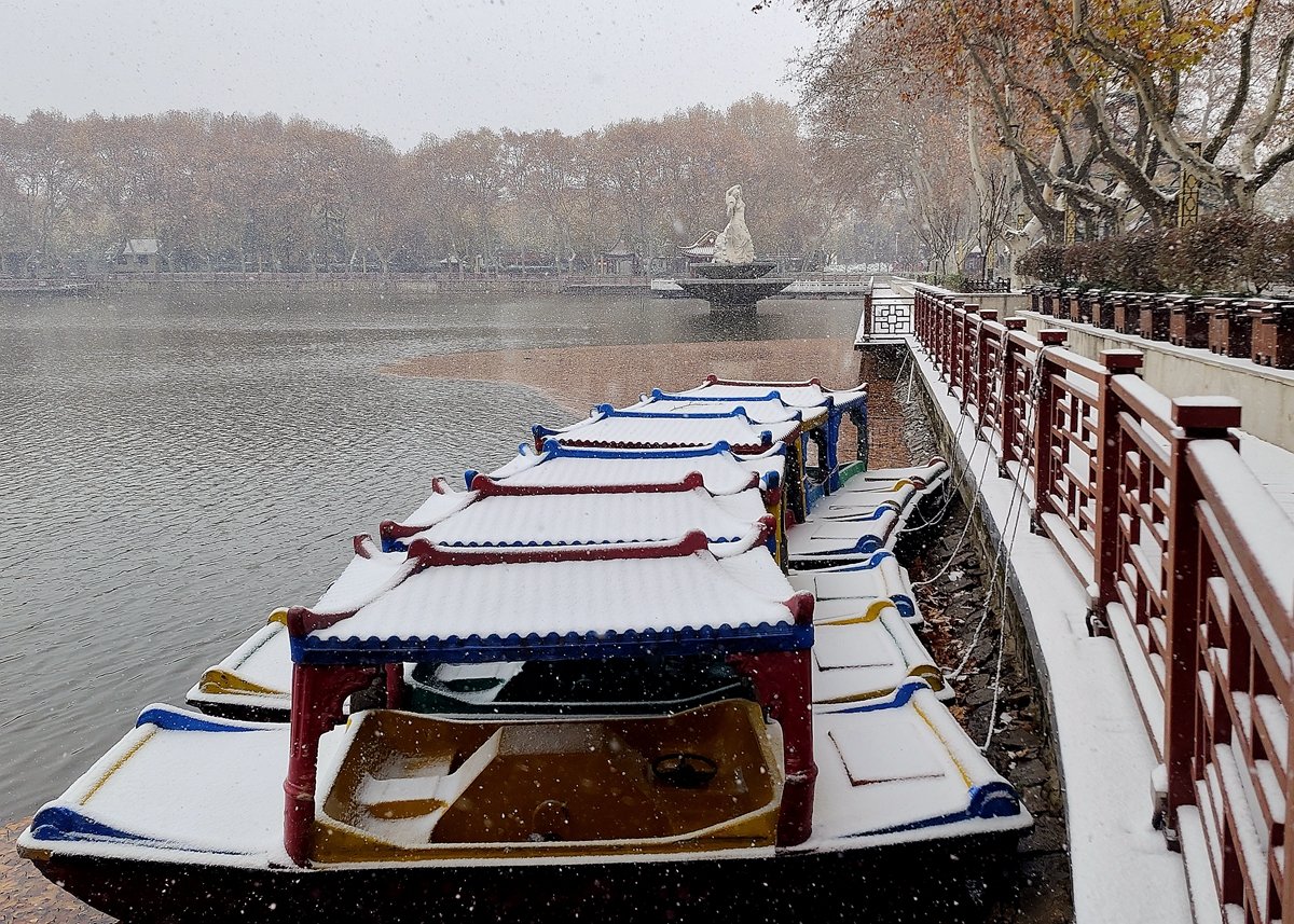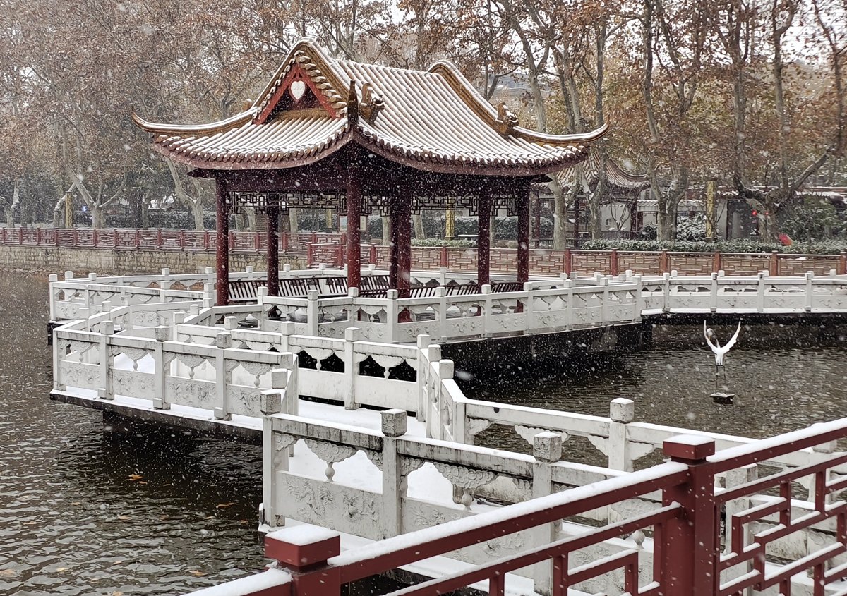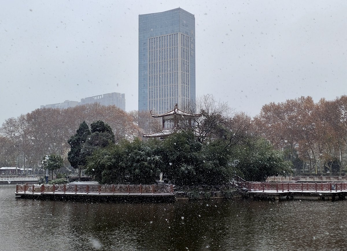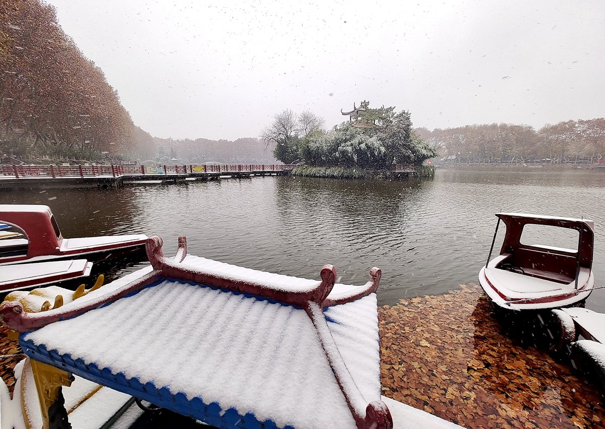 2022年12月16日,珠城大雪纷飞,珍珠女在津浦大塘听雪。