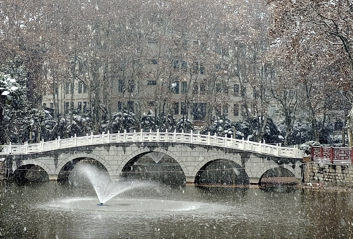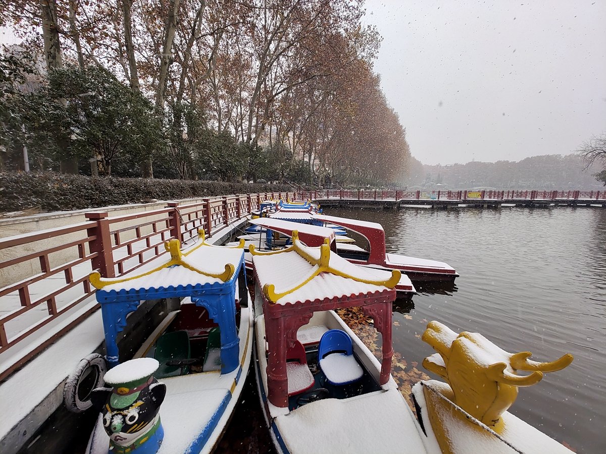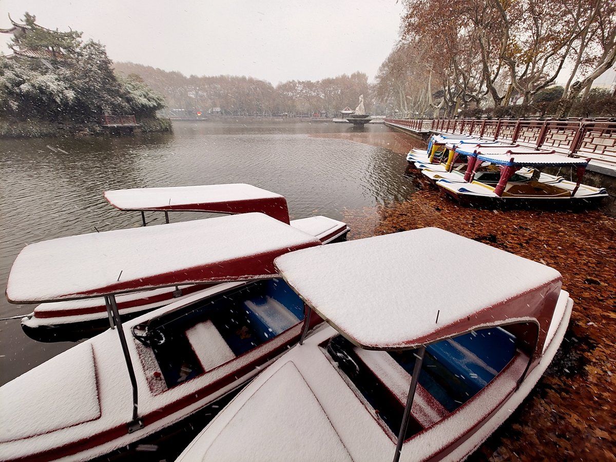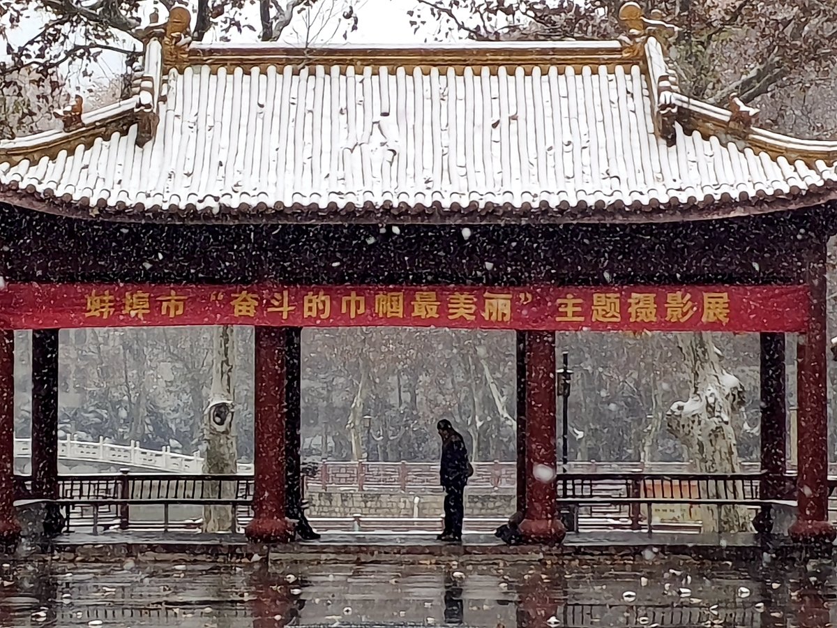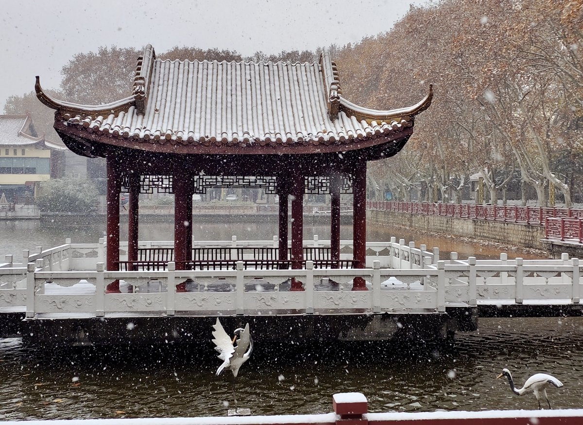 2022年12月16日,珠城大雪纷飞,珍珠女在津浦大塘听雪。