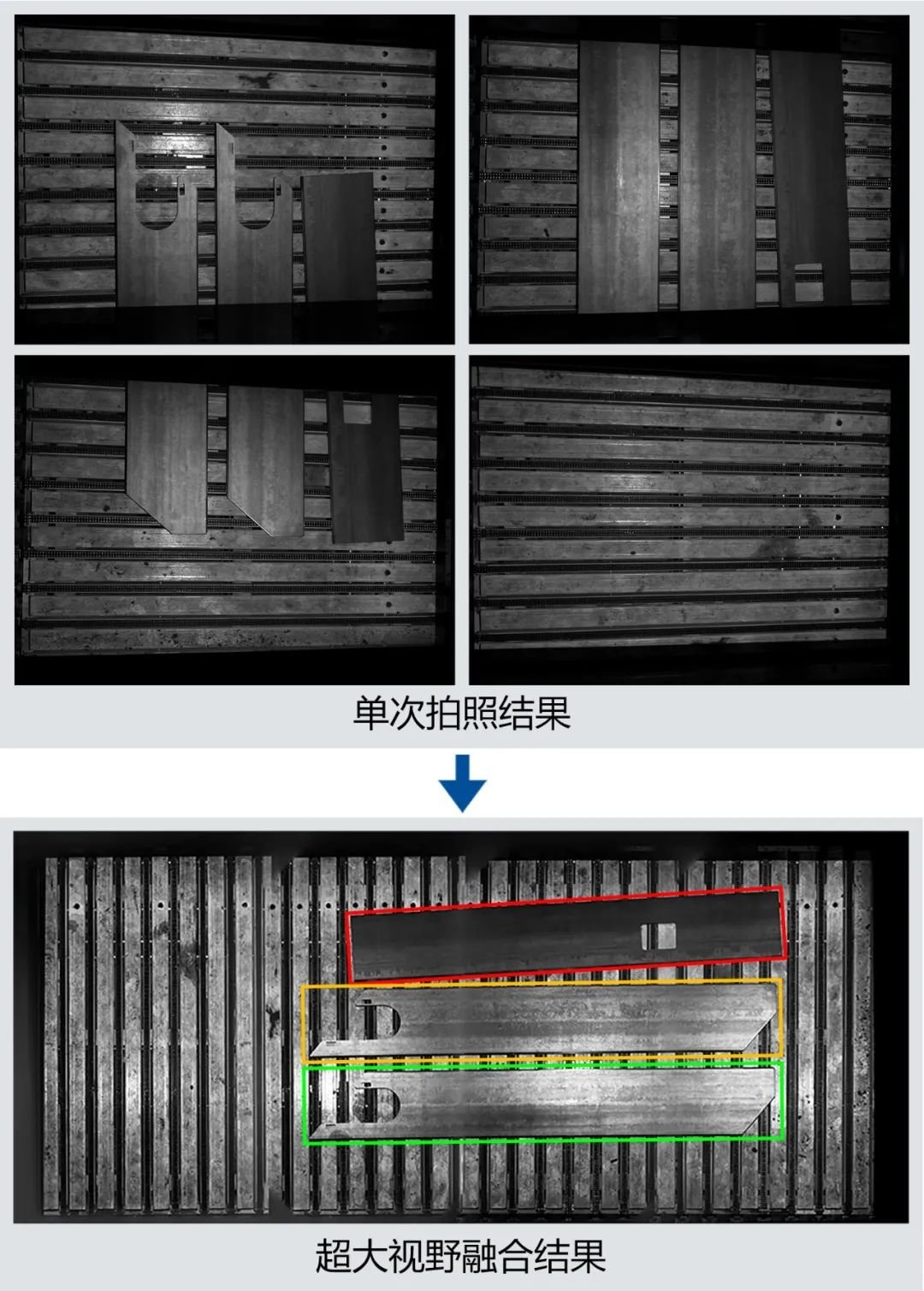 视比特AI机器视觉处理软件通过调用具有自适应功能的3D相机对钢板零件进行快速扫描、多点拍照,并通过图像拼接、精准区分等技术对图像进行适当的处理,实现超大视野下海量规格零件的高精度识别与分拣。