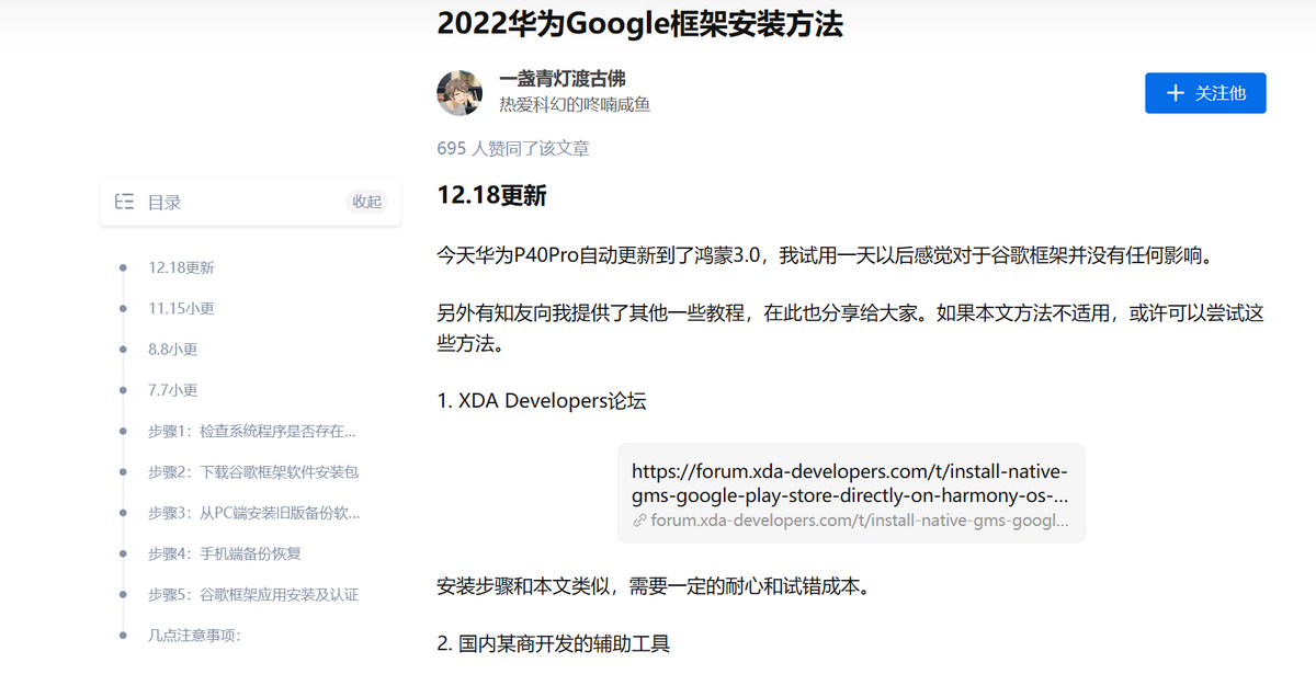 因为华为手机使用的是鸿蒙系统,所以系统内根本就没有预装谷歌服务框架。最关键的是,虽然网上有很多给华为手机安装谷歌服务框架的办法,但这些办法其实并不好用。一方面是因为步骤繁琐,很多方法都需要电脑、数据线和驱动,相当于是智能手机早期的“线刷”,对于没有相关经验的朋友来说,难度显然是比较大的。二是因为鸿蒙与安卓系统的差异,每次系统更新后,都会导致原办法和已经安装的谷歌服务框架失效,换句话就是每次华为手机系统更新,都要重新在网上找安装谷歌服务框架的办法,非常麻烦。