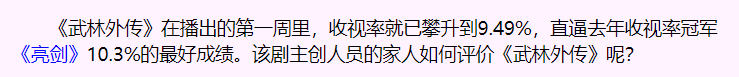 播出的第一周,收视率就直逼前一年的收视冠军《亮剑》。