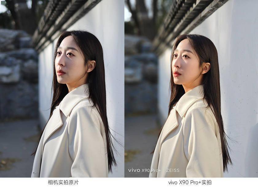 不论是50mm焦段人像,还是90mm焦段人像,通过几组简单的对比你就会发现,好看的人像都是手机拍摄的。上面我们已经说过,以vivo X90 Pro+为例,在拍摄人像时手机会启动其独有的人像算法,不仅对皮肤的肤质和肤色进行美化,还会修饰五官与脸型。有人可能会说,你这是作弊啊,手机修图了,怎么可以跟相机比呢?的确,你一般很难看到摄影师拍摄的人像原片,即使是大明星,也很难接受摄影师放“生图”。没错,那接下来我们简单的对一张相机拍摄的人像进行后期处理,你来感受下前后的变化。