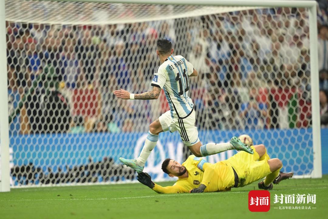 当地时间12月18日,卡塔尔世界杯决赛在卢赛尔体育场进行。上半场,阿根廷队凭借梅西的点球破门和迪玛利亚的推射2:0领先法国队。梅西进球后振臂庆祝,迪马利亚进球后双手比心。