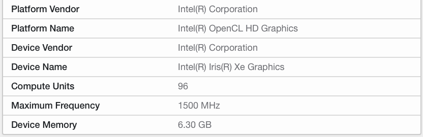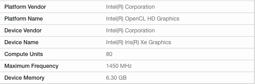 如上图所示,i7-1360P 核显为 96EU,GPU 频率可达 1500MHz;i5-1340P 为 80EU,GPU 频率可达 1450MHz。