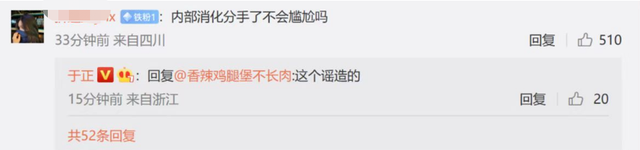 虽说公司没有理由去约束旗下艺人谈恋爱,但是很多网友还是认为这事情跟于正脱不了关系,所以目前于正的评论区和实时广场都沦陷了。网友们对于正冷嘲热讽,评论区都是嘲讽他应该早知道了,还炒一波热度。