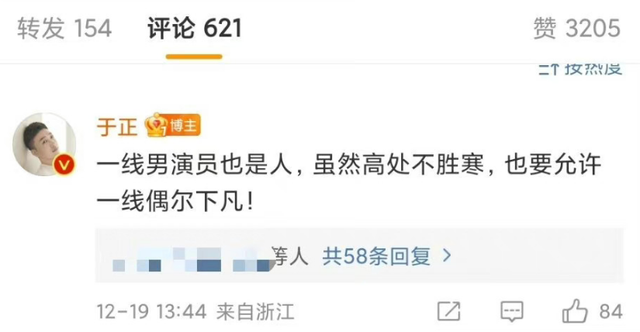 他首先是发布了绯闻女主角赵晴的照片,随后又在评论区里面写了这样一句话,大意是说一线男演员也是人,虽然高处不胜寒,也要允许一线偶尔下凡,他口中的“一线”自然指的就是许凯,他把许凯谈恋爱的行为叫做下凡,让人觉得有些啼笑皆非。