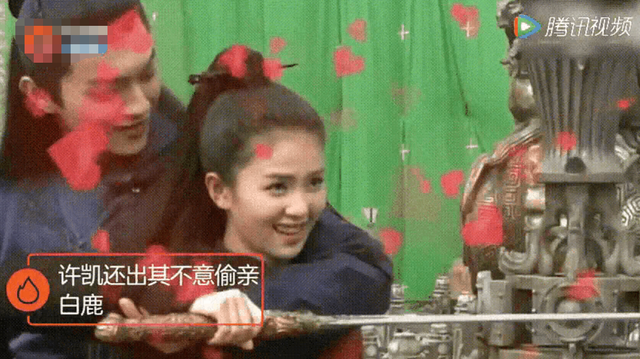 第二绯闻女友白鹿,和许凯合作过《烈火军校》和《招摇》两部戏,两人在剧中CP感比较强,外加两人在片场有些亲密互动,比如白鹿吃许凯豆腐摸他屁股,许凯出其不意偷亲白鹿等,曾经让不少人认为他们两人在谈恋爱。