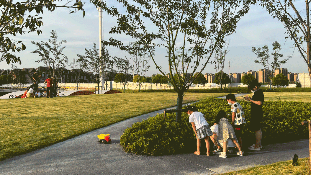 2021年有幸获得“城事LAB”的邀请,参与了松江的一块代建绿地的提升。項目是一个典型的15分钟生活圈的基底,以住宅为主、商业跟医疗配套陆续引入;典型的一条宽30-40米的水道,典型的垂直水岸,已建成成熟的绿化生态结构,以及对应的技术要求体系如绿地率等。“城事LAB”已经针对整个水岸活力进行了策划。而景观提升,对于这样的典型水岸公共绿地,考虑到它的社区属性,我们将工作的颗粒度控制在家门口的一分钟,也就是300-500米的城市路网的范围内。