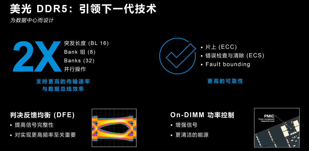 随着计算机架构的进步,此类工作负载往往托管在超大型“可横向扩展”的高性能服务器集群中。这些服务器集群需要集合最强大的算力、架构、内存和存储基础设施,以满足关键工作负载对可扩展性、低延迟和高性能的需求。然而随着服务器 CPU 的性能和吞吐量不断增长,DDR4 无法提供足够的内存带宽,来满足不断增长的高性能内核。
