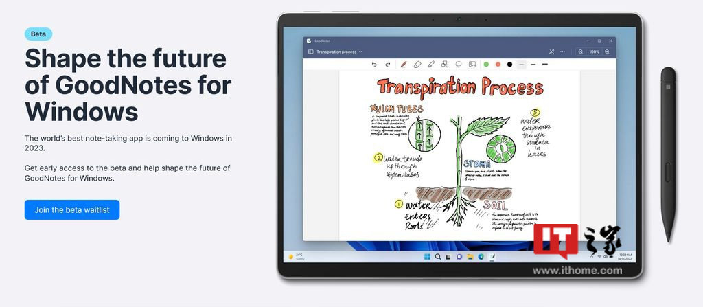IT之家 12 月 19 日消息,据网友反馈,苹果平台热门笔记应用 GoodNotes 已登陆 Windows 11、10 平台,目前面向邀请测试用户推出 Beta 版本。
