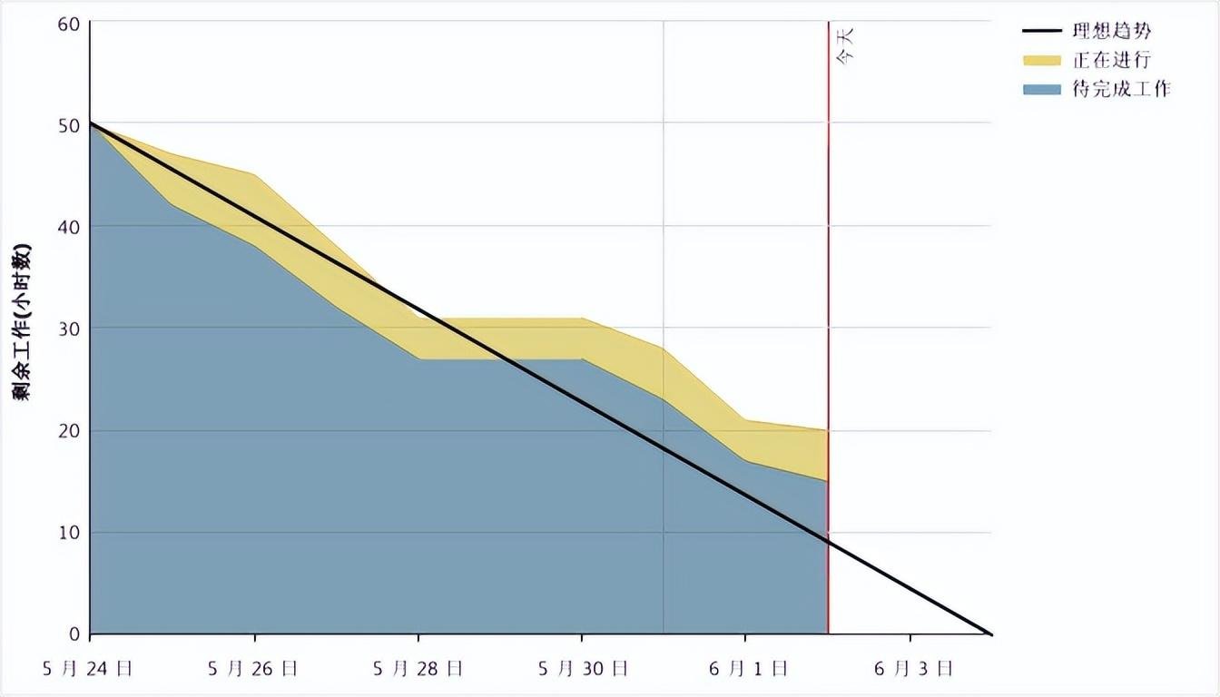 在项目管理中,通过燃尽图不仅能了解项目进度,还能分析出项目中问题,及时进行风险控制。