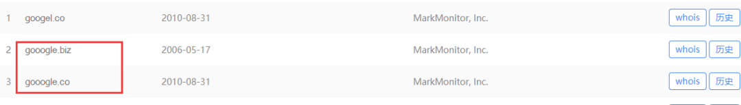 当然这只是题外话,重点是很多大品牌其实都非常重视这些typo域名。一方面是因为不想流量流失,另一方面则是为了保护品牌,避免那些别有用心的人利用自己的typo域名来搞事情。 在这方面谷歌做的就非常的全 面,基本上用户可能会输错的常见typo域名都进行了保护。 其中包 括 但不仅限于“gooogle.com”、“gogle.com”、“gooogle.co/.biz”等。