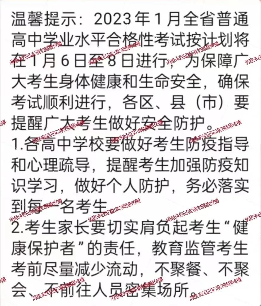 最近几天,小编在网上看到有消息称:高二会考不延期。小编搜索了省教育厅、省招生考试院和市教育局的微信公众号,并未找到此类信息,也有不少高二家长表示没有收到此信息,看来网上流传的信息不可轻信,大家还是咨询学校老师,或者等待学校准确通知。