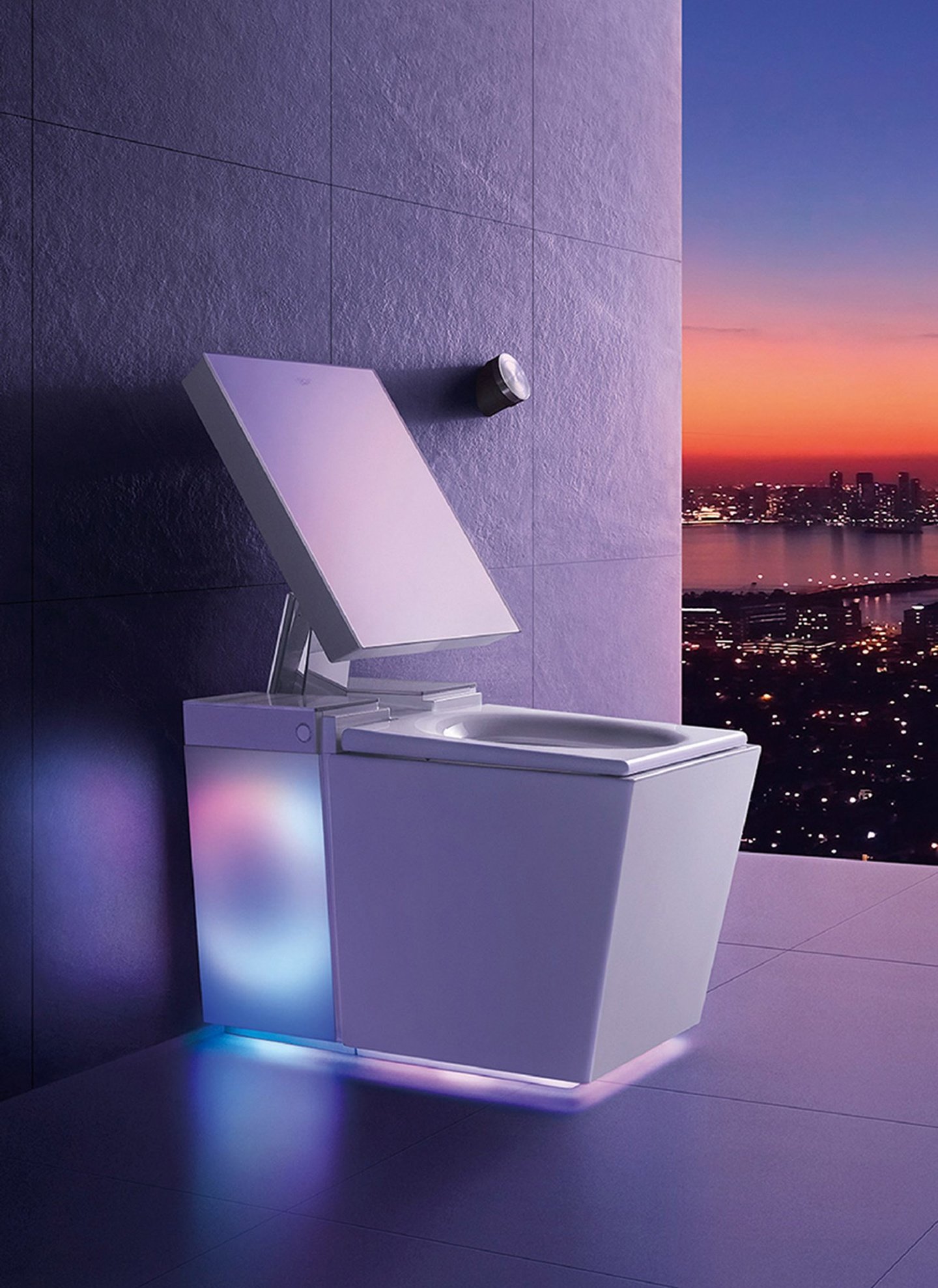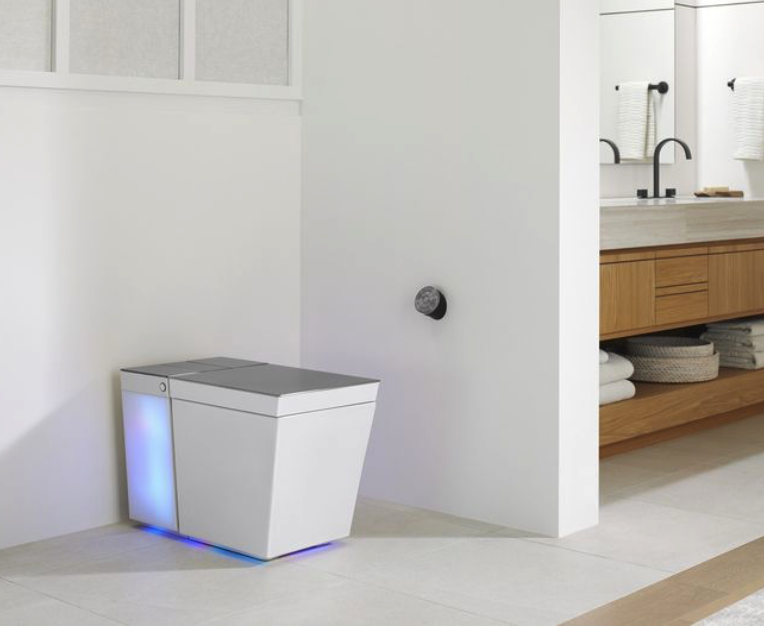 智能化方面,这款马桶集成的 LED 和环绕声功能可由 Kohler Konnect 应用程序管理。