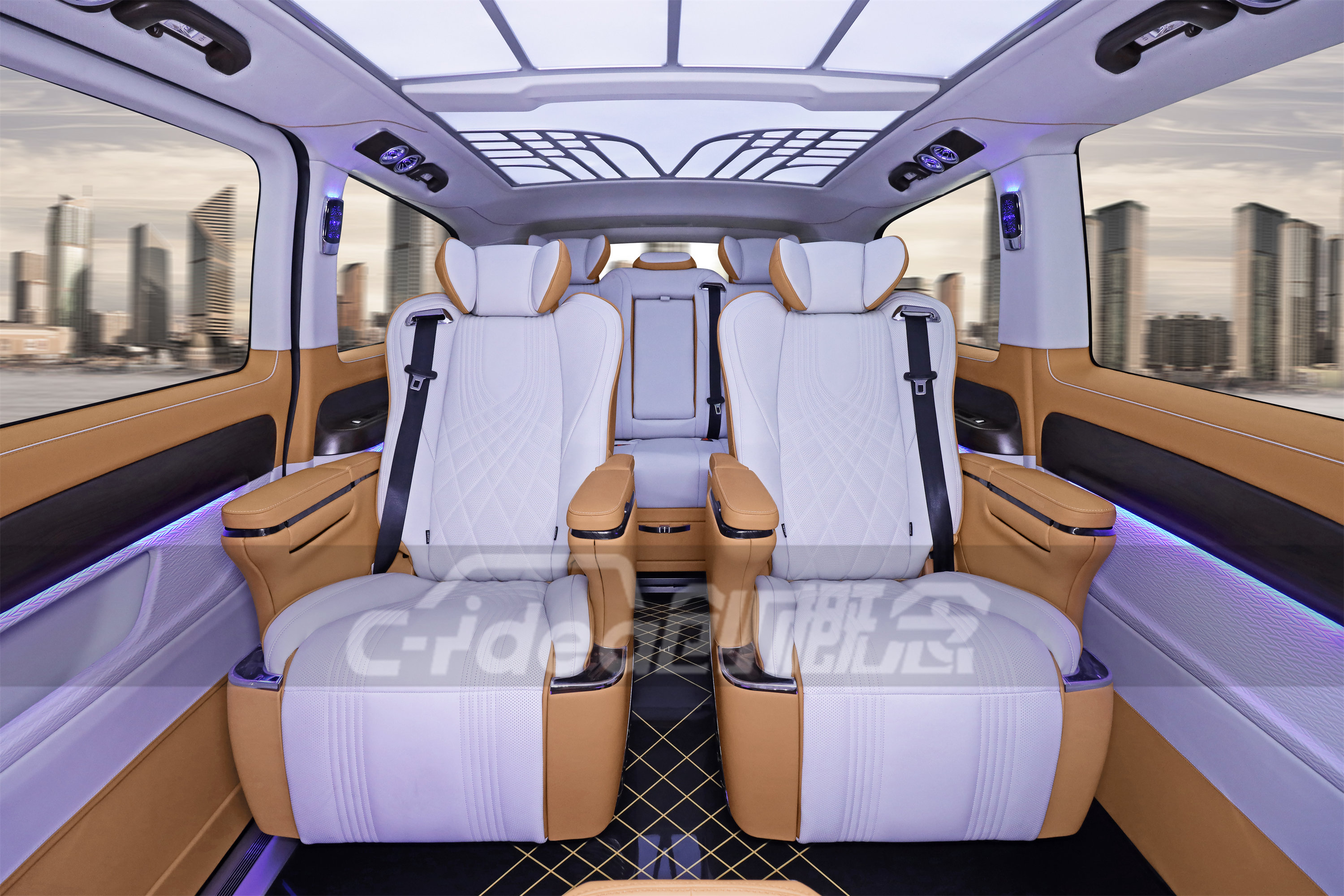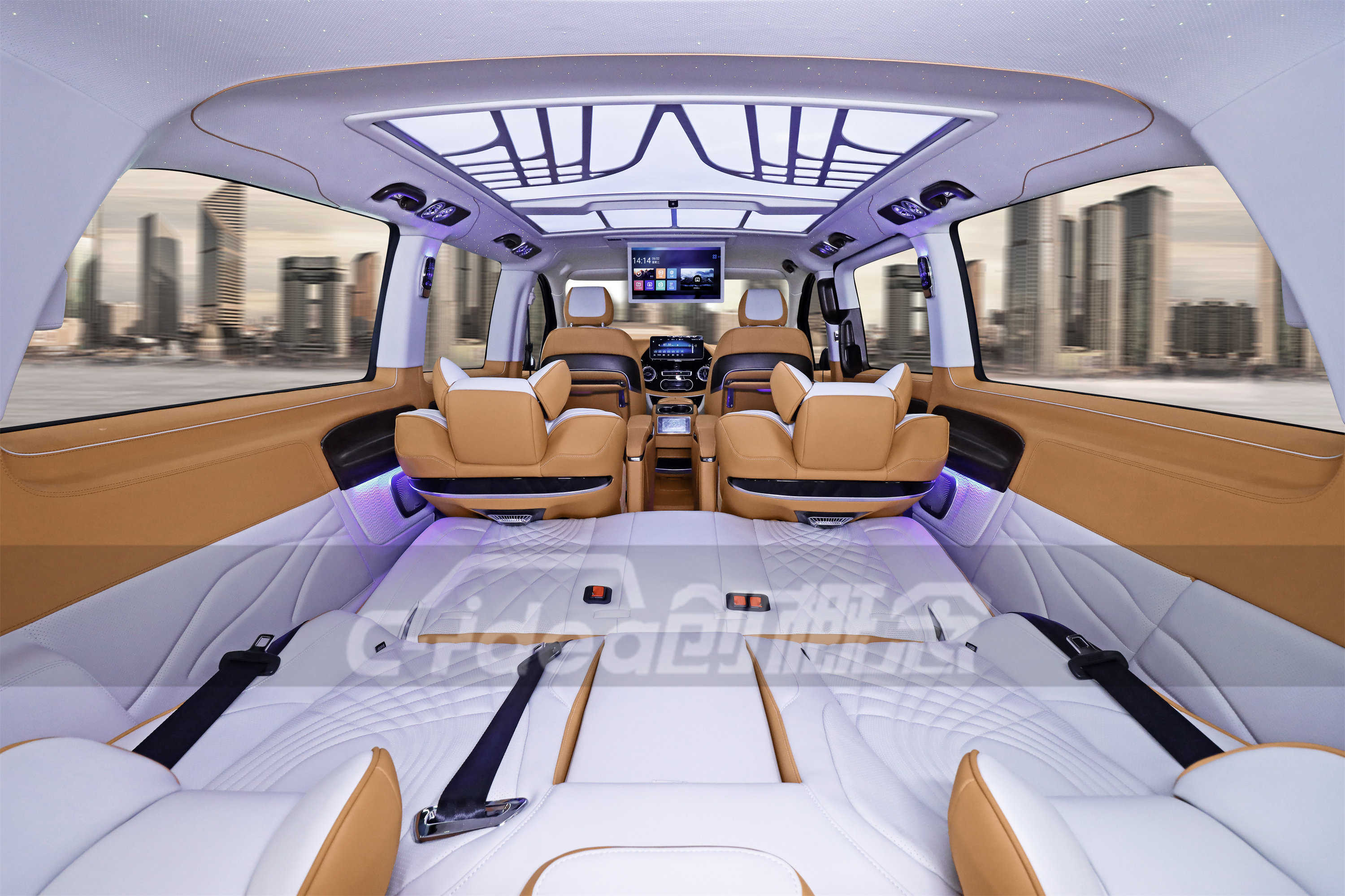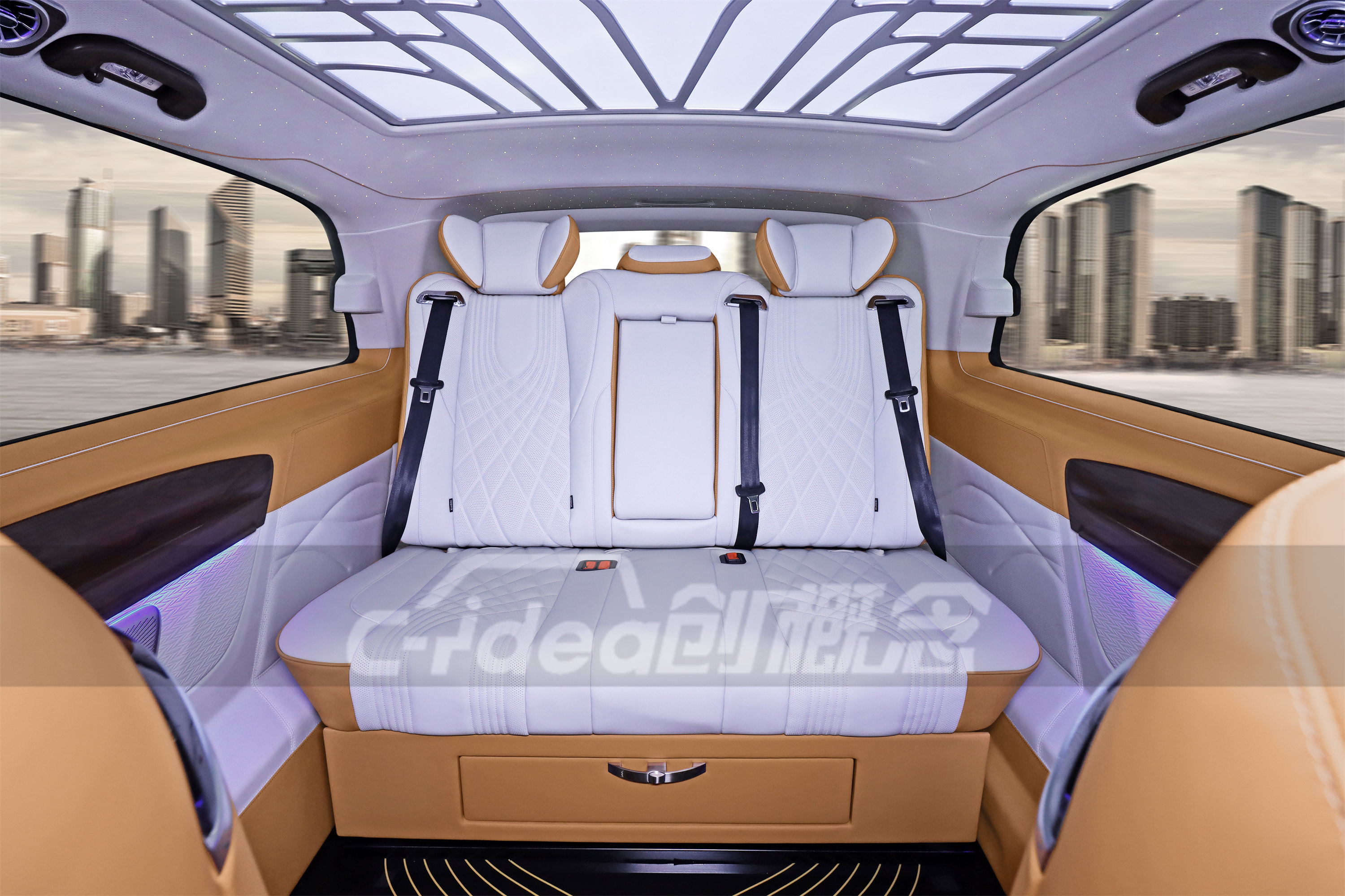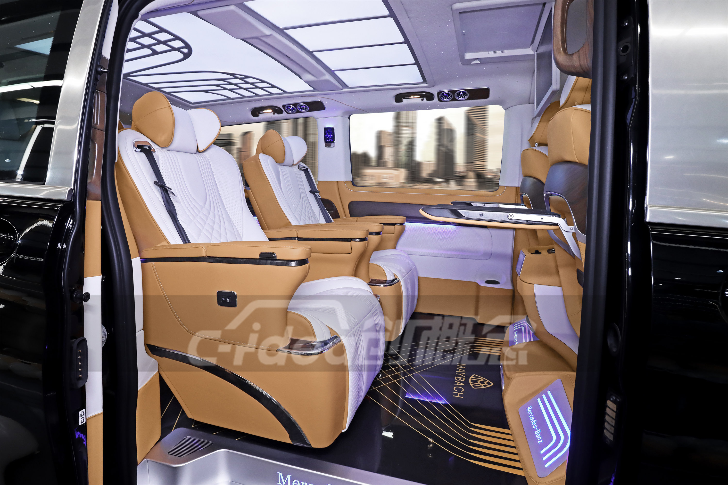车顶定制迈巴赫天使之翼顶灯,,满天星流星灯,两侧安装环绕式七彩氛围灯,一层层点缀更有立体感,出风口换成带灯款双涡轮风口,更加上档次。