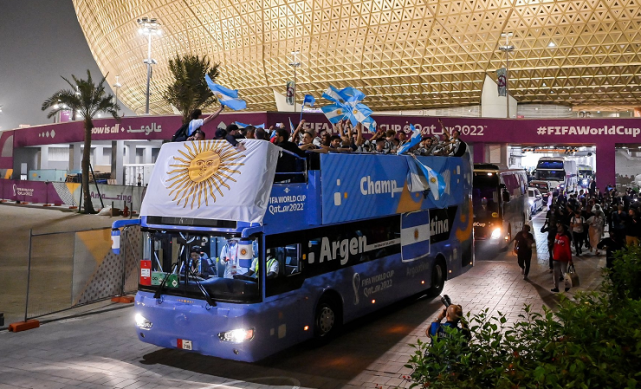 阿根廷队夺冠之后稍作调整,全队一起回国。阿根廷队带着世界杯冠军奖杯大力神杯离开多哈,返回阿根廷,期间他们要经停罗马,然后再飞往阿根廷首都布宜诺斯艾利斯,预计当地时间周一晚上才可以抵达。