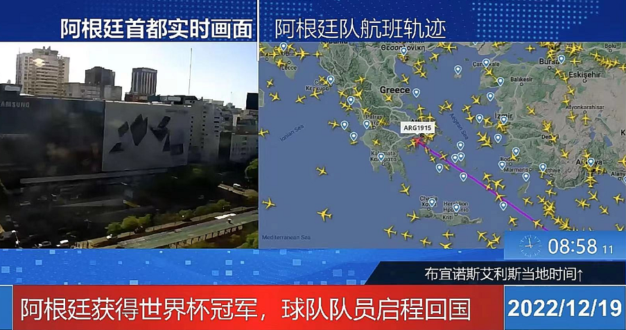 阿根廷队回国,关注度极高,他们回国的航班更是被媒体进行直播,实时监控阿根廷全队乘坐的飞机,可以看到他们的实时动态。在线观看、留言的人非常多,大家都很关注新科世界杯冠军得主的回国情况。