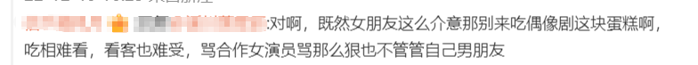 既然女朋友这么介意那别来吃偶像剧这块蛋糕啊,吃相难看,看客也难受,骂合作女演员骂那么狠也不管管自己男朋友↓
