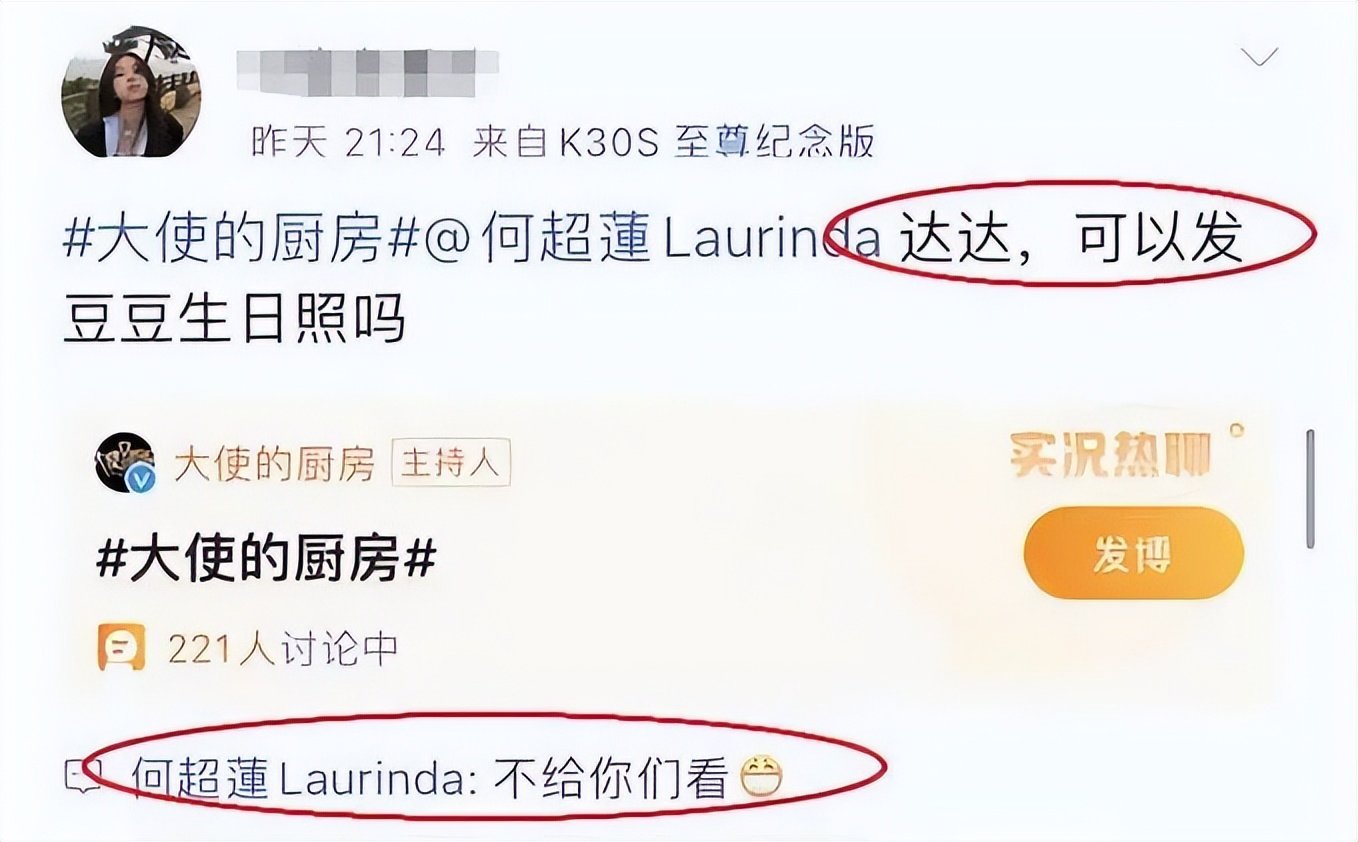 有网友也去何超莲社交平台下旁敲侧击询问何超莲,有网友问何超莲能不能发豆豆的生日照,何超莲回应说不给你们看。