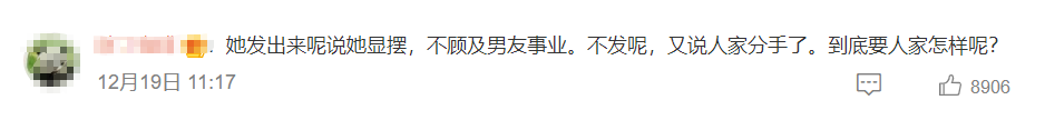 有网友表示何超莲发出来说她显摆,不顾及男友事业。不发呢,又说人家分手了。到底要人家怎样呢?