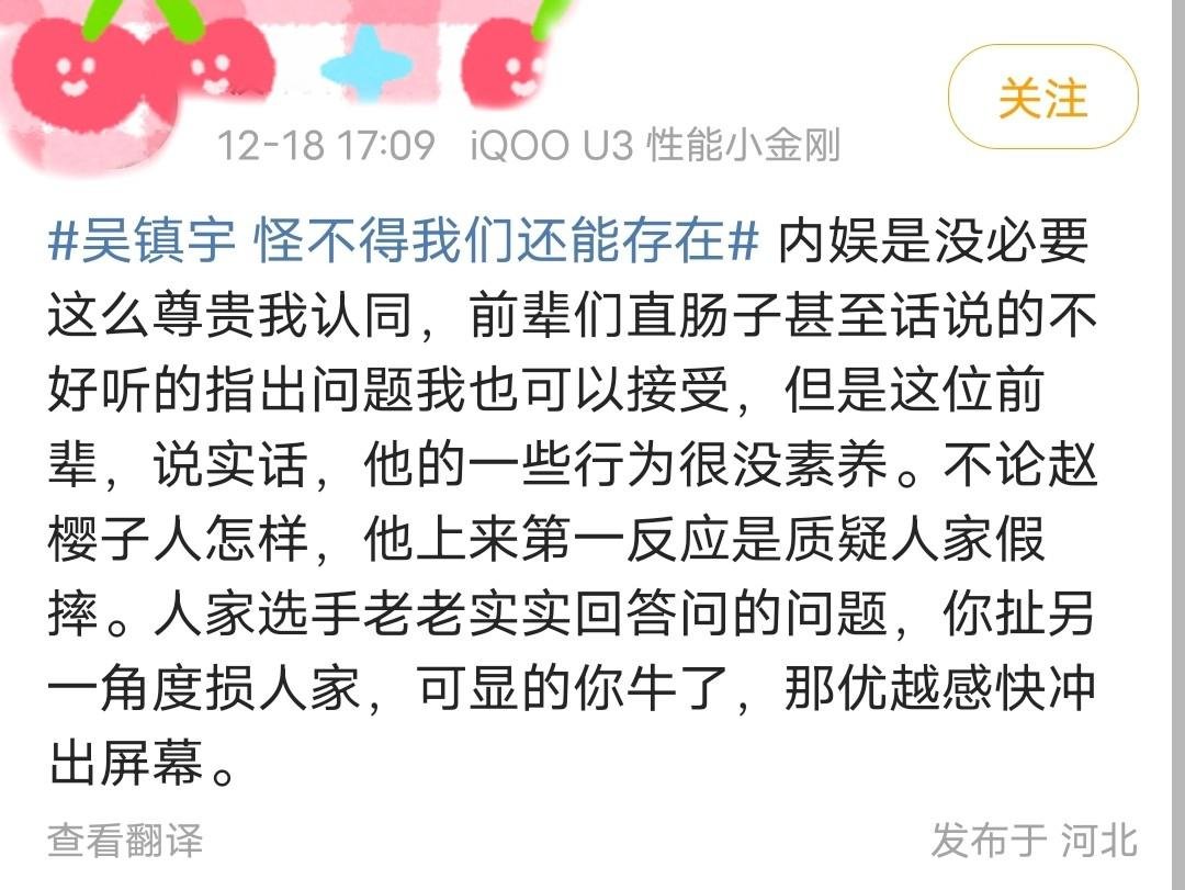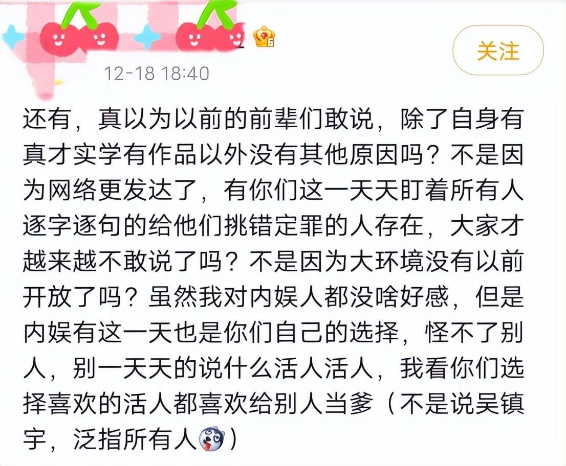 让有些网友更加跌破眼镜的是,吴镇宇在不了解事实真相的情况下,有点当场给赵樱子难堪的意味。所以会有人说,“不是因为有前辈的身份,就可以随意当场指责别人,给人难堪”。