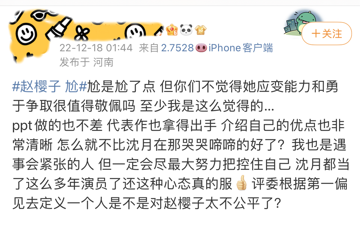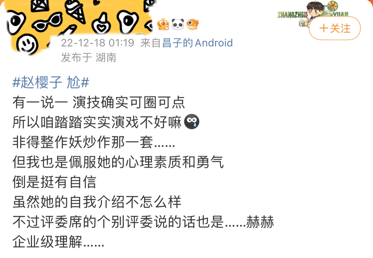 更多的人质疑导师们的“爹味”点评,表示赵樱子“不过是单纯的性子直,确实不太会说话,表达也容易有歧义,没必要被一直针对”、“有自信怎么了,没有自信的话她怎么会在这个舞台上拼命给自己争取机会”、“赵姐如果真有心机,应该装个完美人设才对,怎么现在会让这么多误会她,要我看她就是太实在了”?