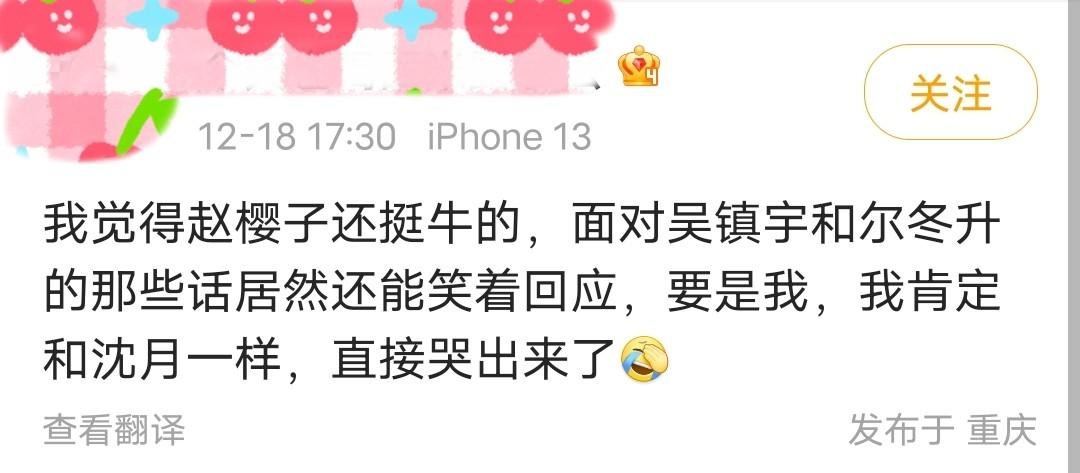 赵樱子难过流着眼泪的一幕,狠狠戳中了观众的心。网友纷纷表示心疼不已,“真的很心疼她,赵樱子没有什么坏心眼,就是一个很真实的人,评委们有点刻薄了”、“感觉一个人被孤立的镜头也太让人难受了”、“看赵樱子被晾在一边我直接看哭”······