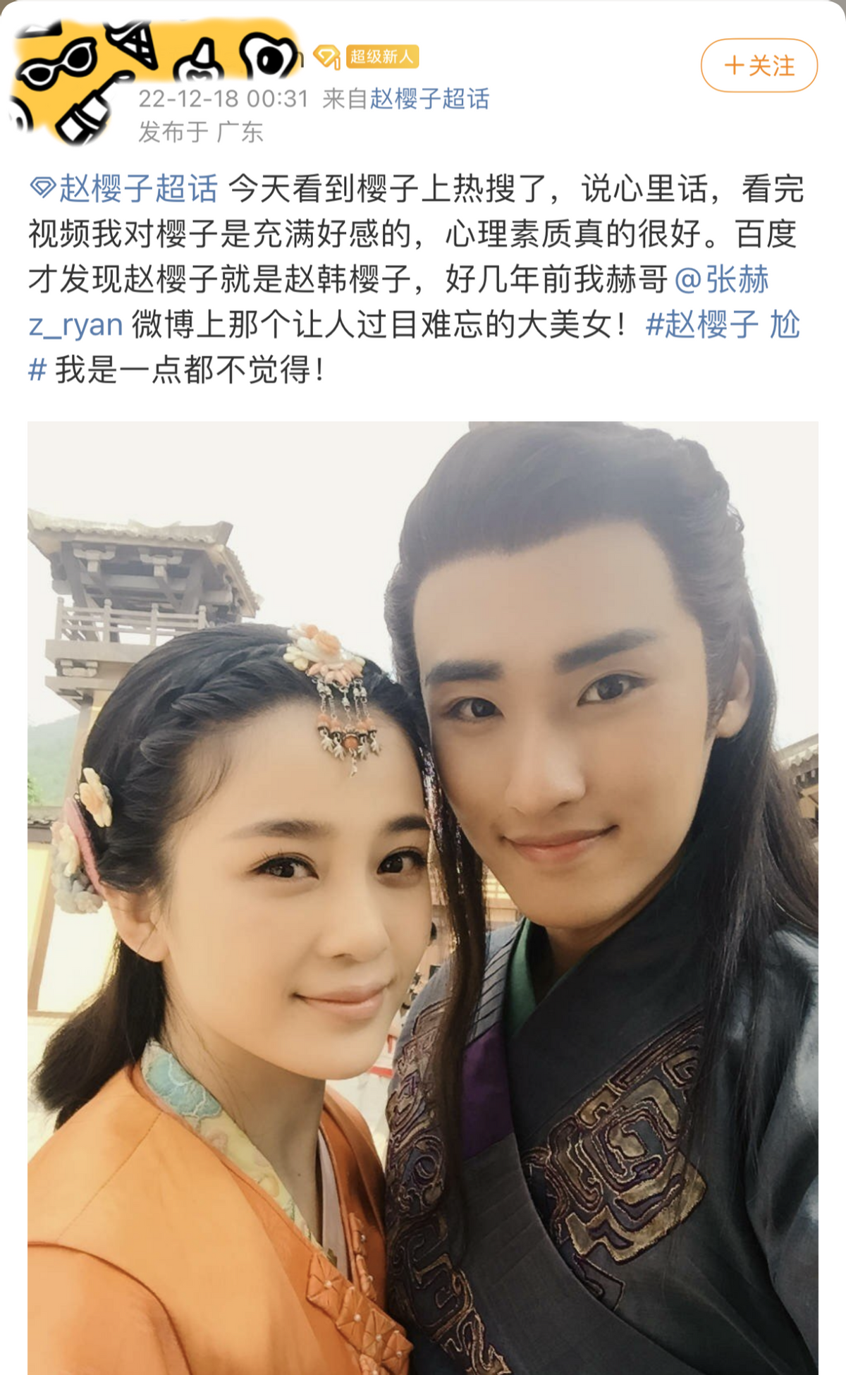 都说一个演员不怕尴尬,就怕没特点以及不被人记住。所以节目中,当赵樱子甩出“迪幂孟扎”这样的梗,很多人都觉得无可厚非。本来网友们给赵樱子起这样的外号,认为她是杨幂、迪丽热巴、孟子义、古力娜扎的结合体,也算是一种对她颜值的认可。现在为了能拥有记忆点,让相对不熟悉内娱的香港前辈们记住她这样介绍自己,大家会觉得这正是赵樱子有事业心的表现。