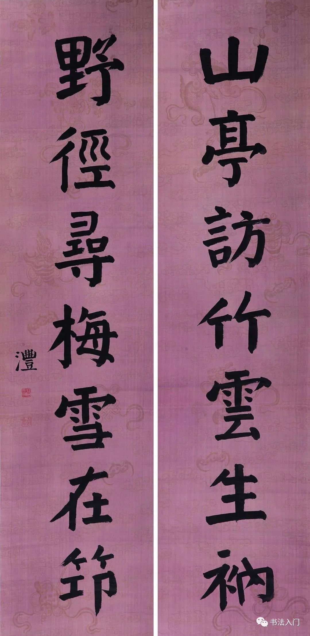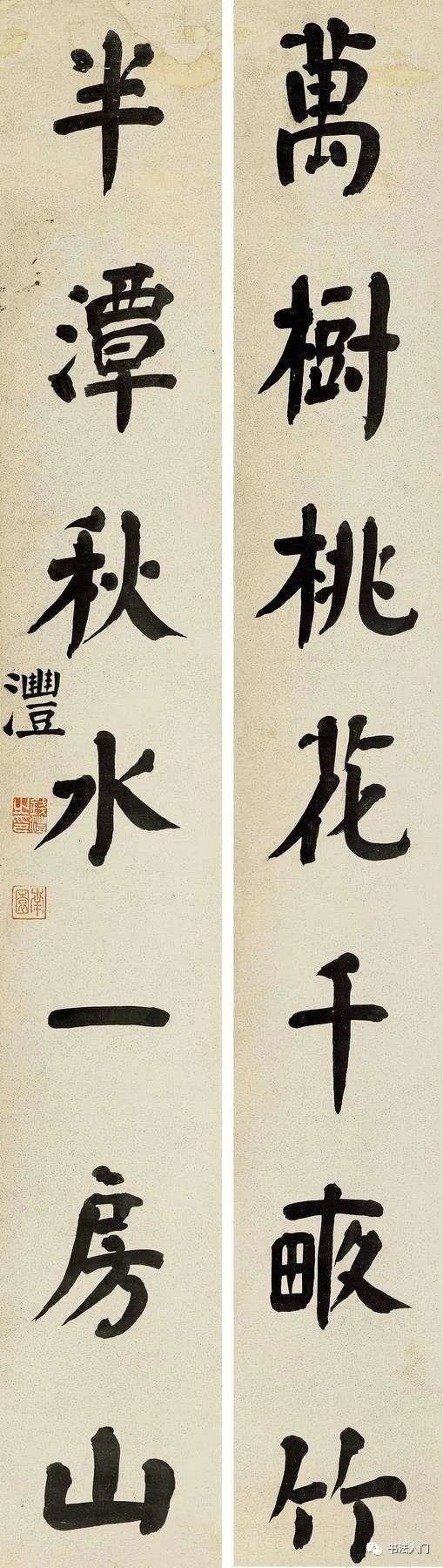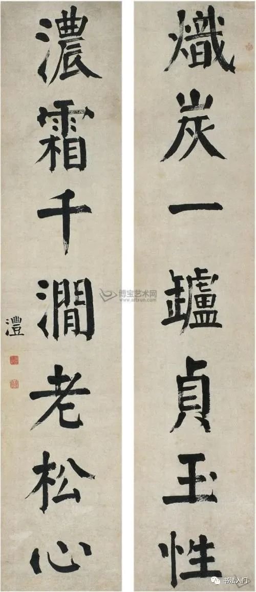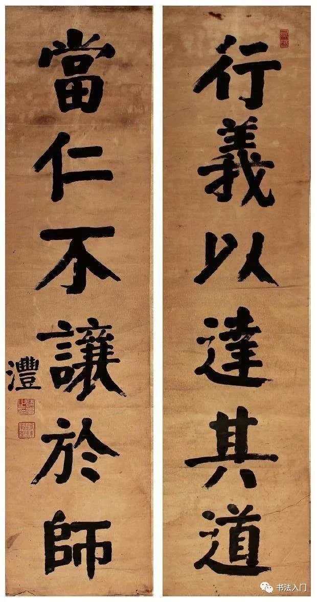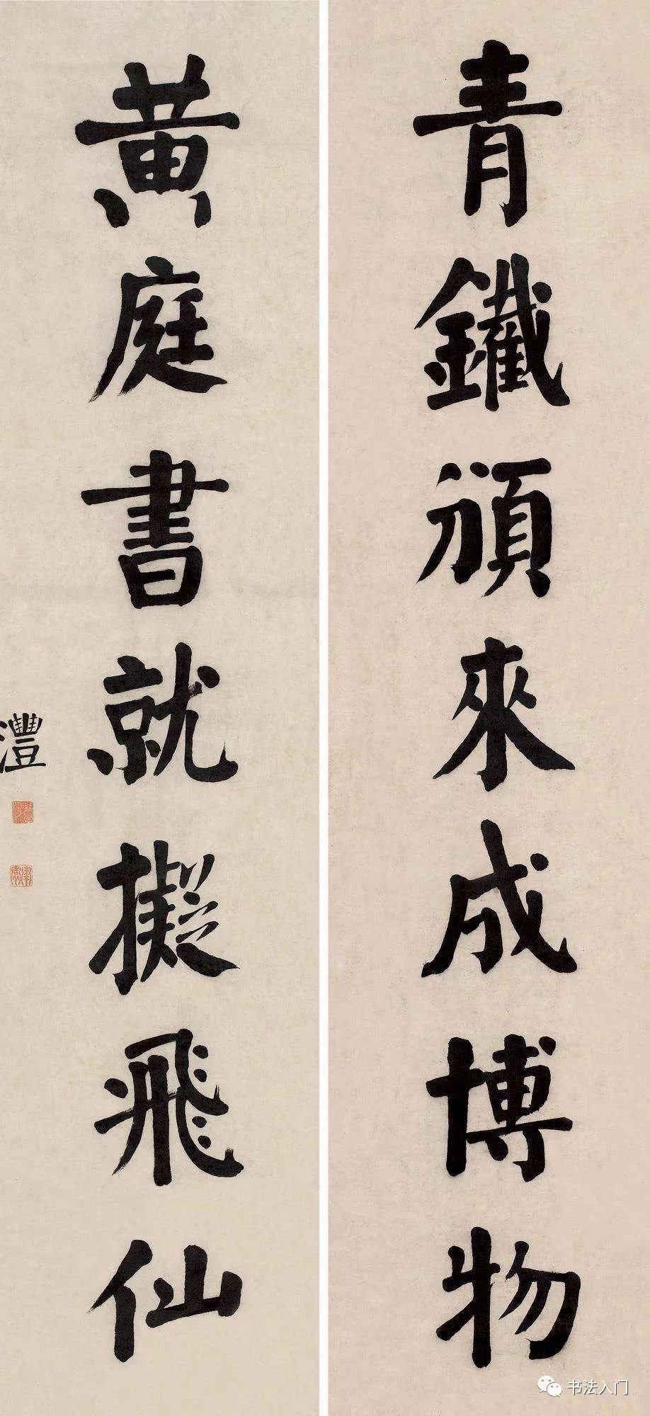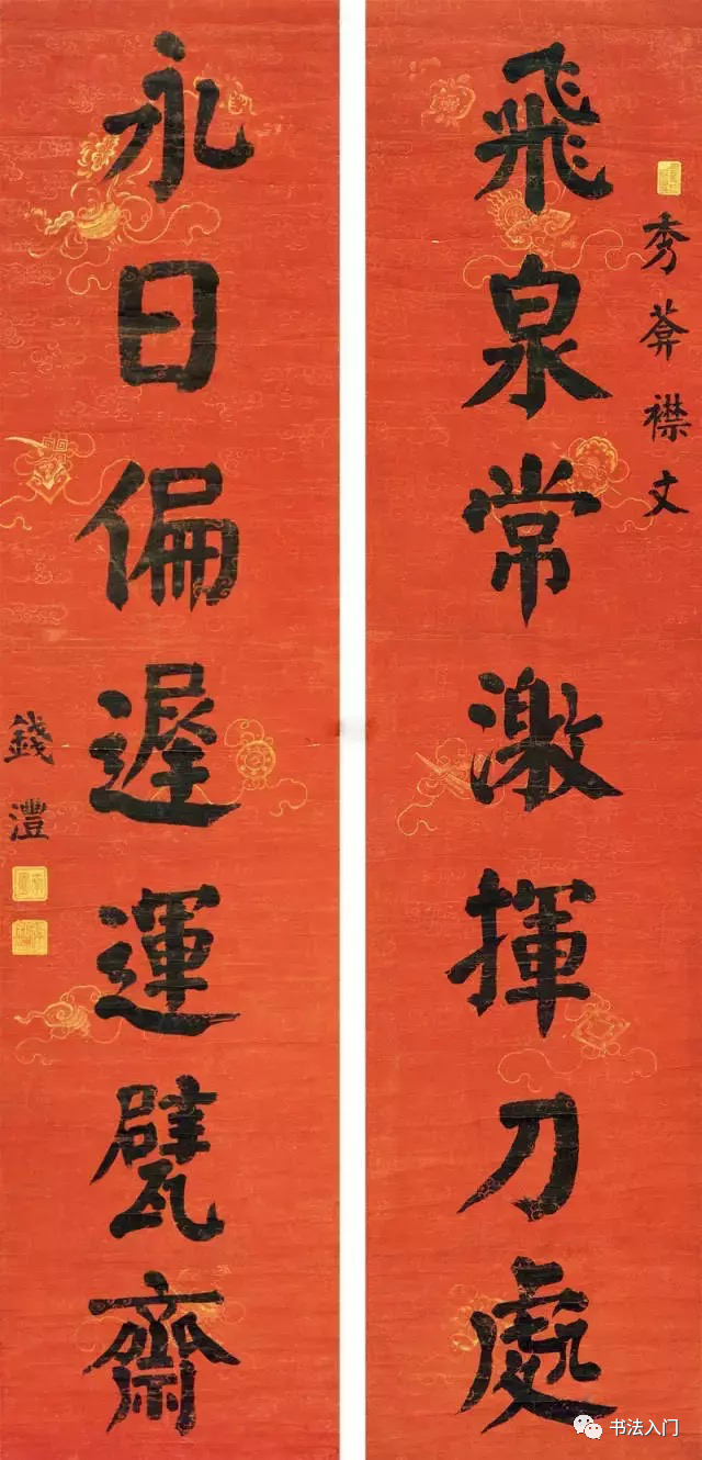 我们再来看看钱灃的另外十幅代表作,为便于大家学习借鉴,我们特遴选钱灃所擅长的颜体楷书对联作品——