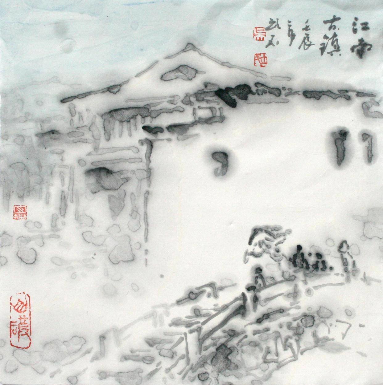 图:吴立民作品《江南古镇》。