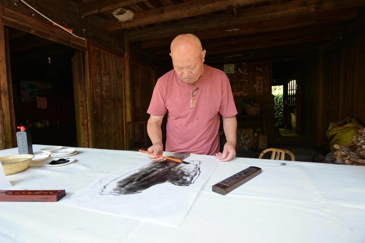 仲秋时节,画家吴立民裹挟着山野之气,拎着风干肉,背着像风一样飘逸又像山一样厚重的画稿,风风火火地从乡野回到杭州的家——金沙村。