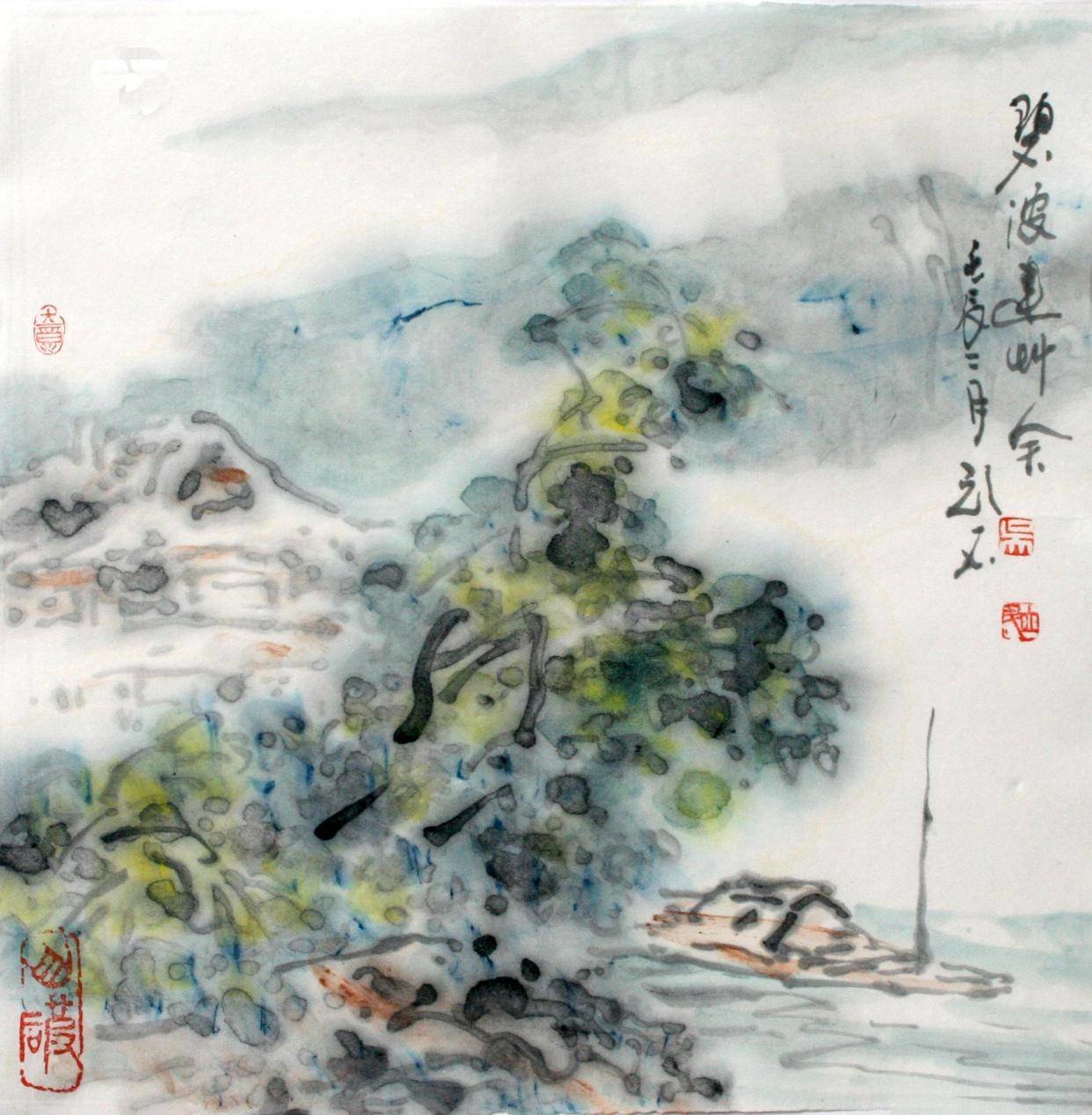 可见,吴立民的写意山水,或云烟,或流水,或草木,其简练的笔墨,大片的留白,生动含蓄地表现出庄重而又空灵的境界——实现这些不仅要有极高的造型能力和长期积累的技法经验,而且要有深厚的文化底蕴和高格调的艺术修养。