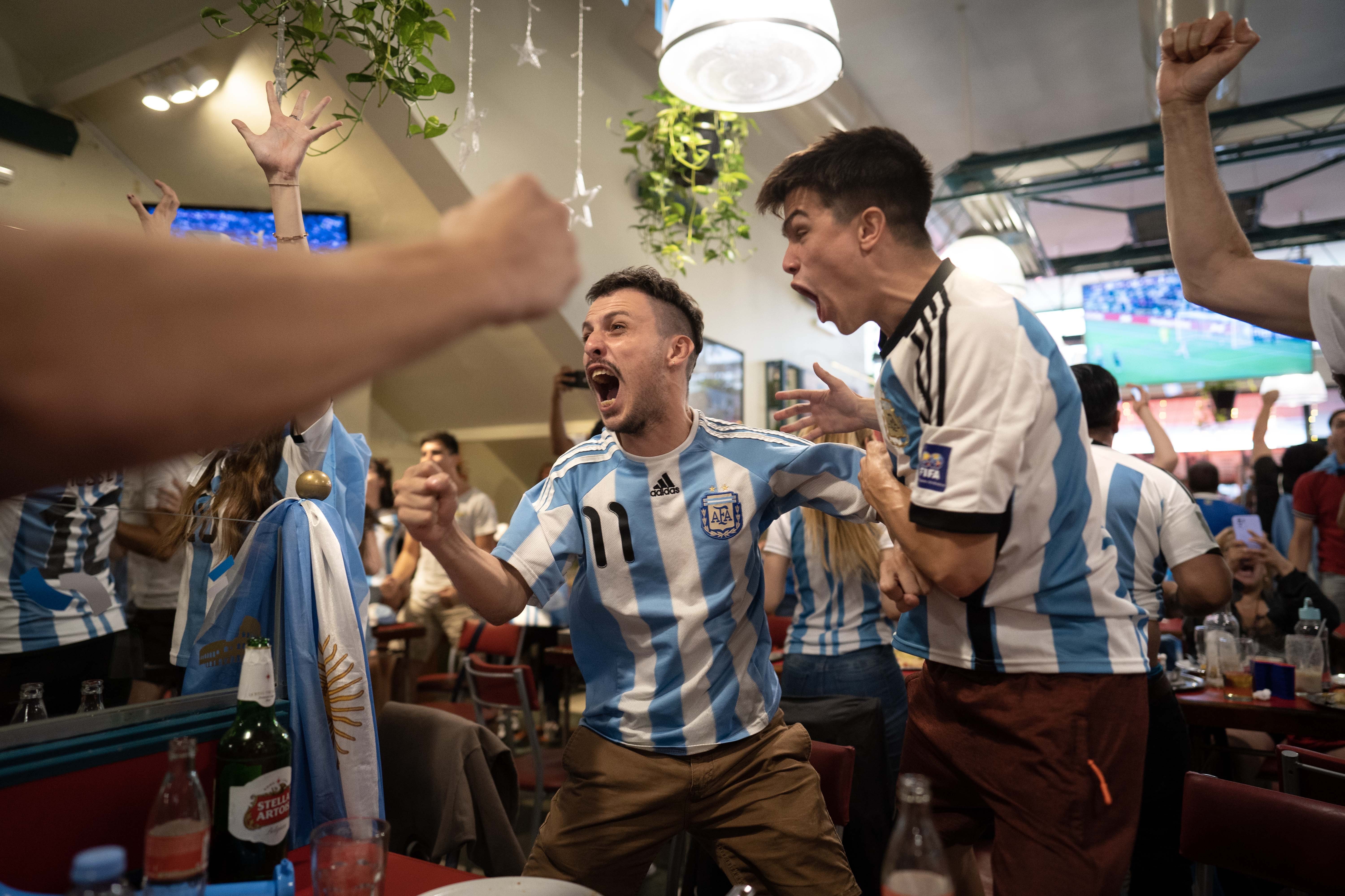 12月18日,球迷在阿根廷首都布宜诺斯艾利斯市中心的一家餐馆庆祝。新华社发(马丁·萨巴拉摄)