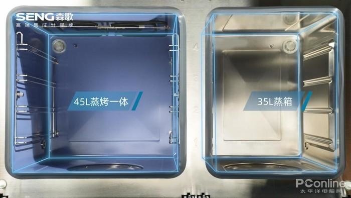 森歌i5双腔智能蒸烤集成灶创新研发左蒸烤、右速蒸的结构,左腔45升蒸烤一体,右腔35升独立速蒸,16种烹饪模式组合,效率倍增。