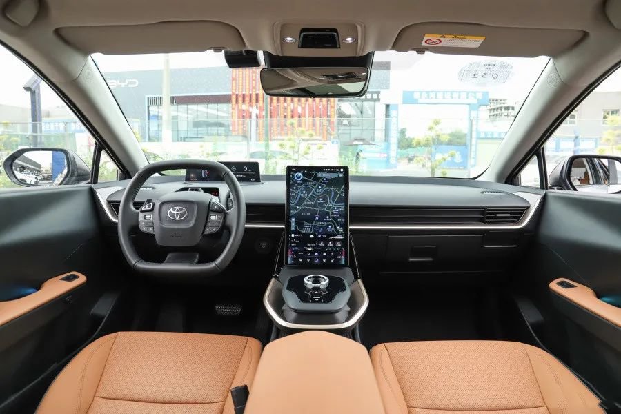 一汽丰田bZ3整体内饰设计与一汽丰田bZ4X有着很大的区别,可以看的出一汽丰田bZ3采用的要更要简洁的设计语言,但方向盘依旧是bZ家族的风格,上下平底为主要设计元素。当然,要说科技感的营造可以说是十分到位的,仪表盘采用悬浮式设计,虽说屏幕尺寸不大,但所显示的各项功能齐全,且清晰易懂。而中控台区域则采用一款竖状的液晶触控大屏,该屏幕集成了整车所以控制项目,可支持语言控制、车机互联等科技互联功能,另外,在屏幕下方区域则是变速箱换挡区域,采用的是旋钮式换挡,造型上也非常的精致。