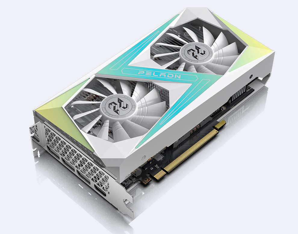 磐镭RTX 3050的造型与RTX 3060莫邪是一脉相承的,不同的是外壳上的贴片,大胆的撞色设计是这款RTX 3050最大的亮点,这种“青黄不接”式贴片设计,让整体显得年轻时尚,活力黄色加上素雅青色,跳跃的色彩给人带来眼前一亮的视觉冲击感。