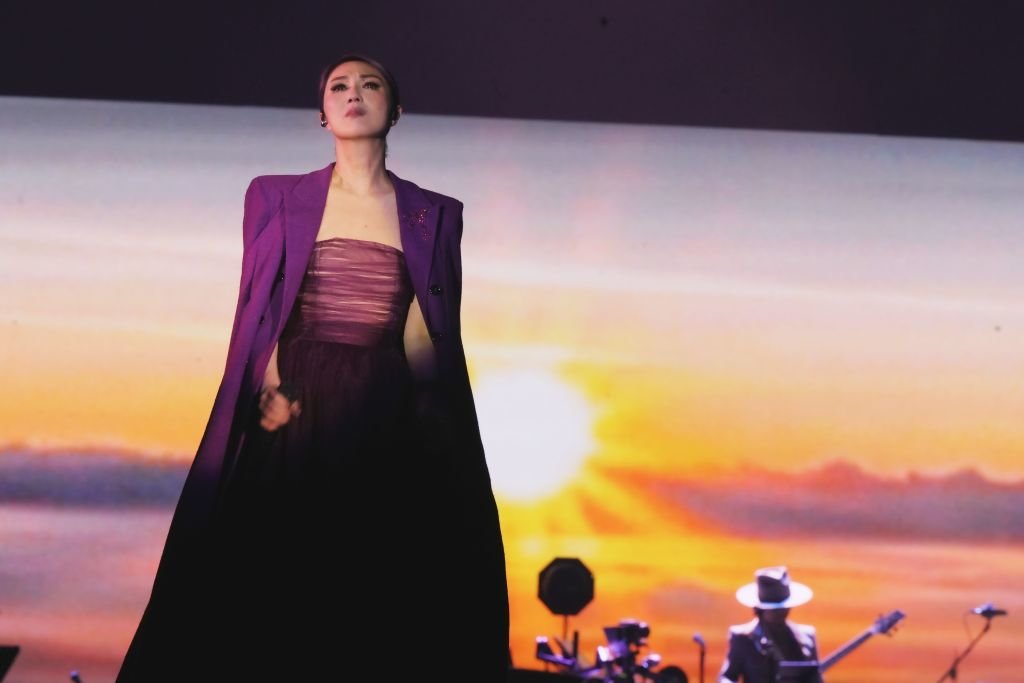 2022年12月18日,杨千嬅分享香港演唱会第二场现场照,身穿紫色礼服华丽登台。