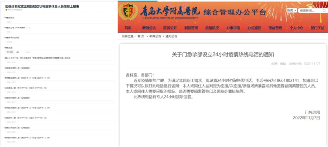 同时,各院区建立人员应急保障机制。根据发热门诊、儿童发热门诊、急诊门诊的就诊数量及医务人员健康状况,提前进行人员储备。截止12月20日,市南院区已经为急诊内科门诊调配4名内科医师、为发热门诊调配1名外科医师、为方便门诊调配平台科室医师1名;其他各院区均在“保健康、防重症、降死亡”方面做了大量的人力、物力储备,同时加强对人员梯队的培训和考核。