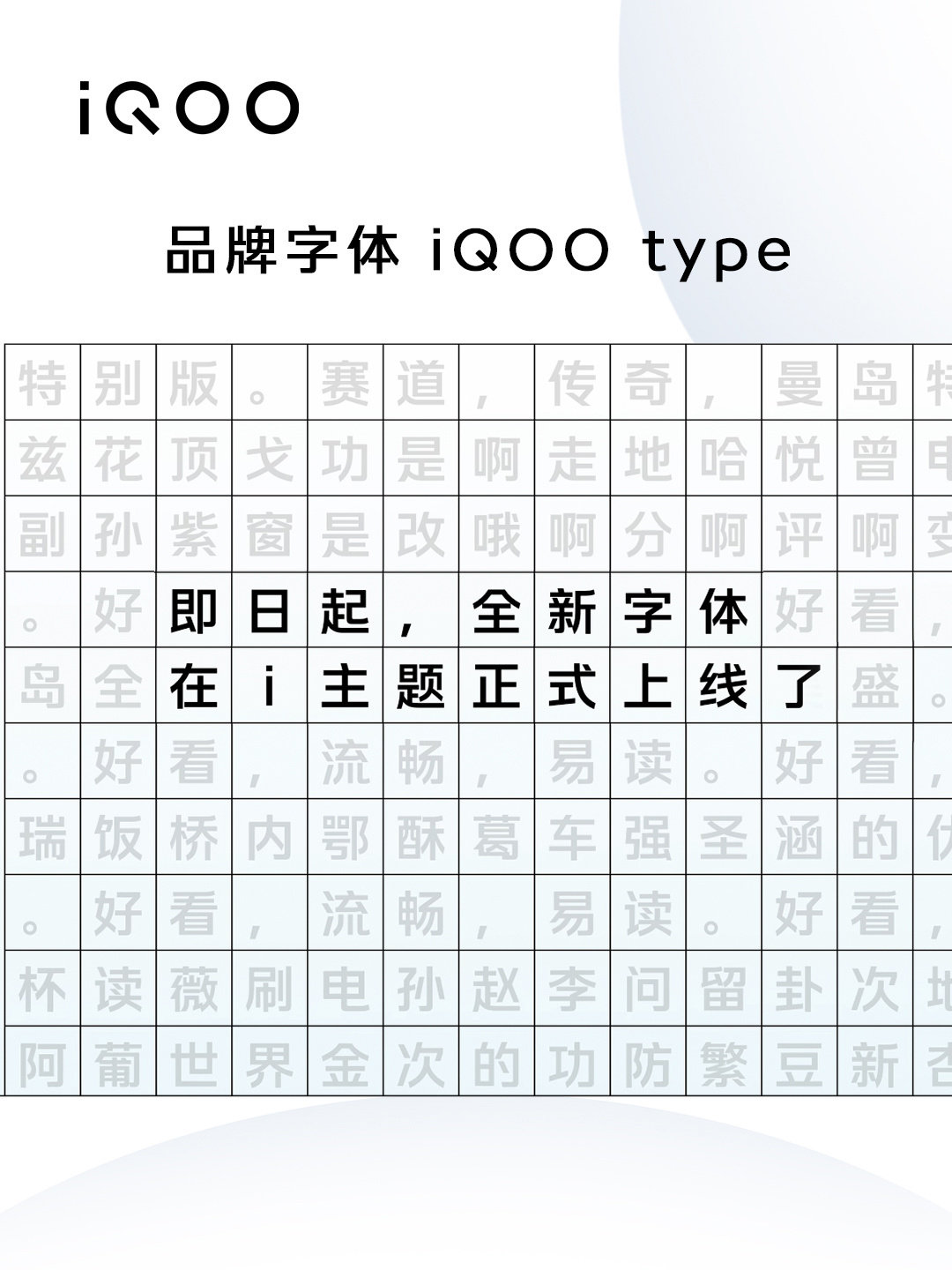 IT之家了解到,在 12 月 8 日的 iQOO 11 系列发布会上,全新品牌字体 iQOO type 正式亮相,用户可打开 i 主题 App,搜索“iQOO Type”即可使用。