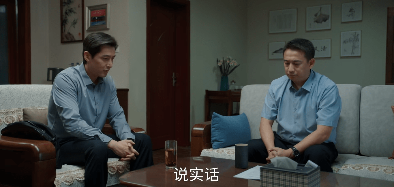 还有场戏是黄磊饰演的县委书记在主持棚户区改造工作会议时,说要“关起门来说几句”。职场人都默契停笔,只有林志为还在低头狂记。袁浩赶紧让林志为停笔。