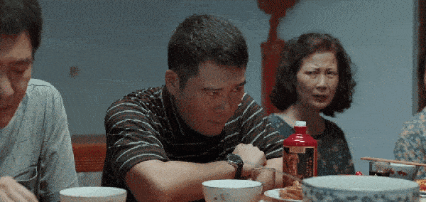 更绝的是妻子给他送降压药的戏,他正焦急的打电话,一回头看到黑着脸的老婆,既有点小惊喜,又害怕对方当着这么多人的面发火,同时又因为长时间不回家心里愧疚,王骁一个小结巴的动作,就把角色情绪演了出来。