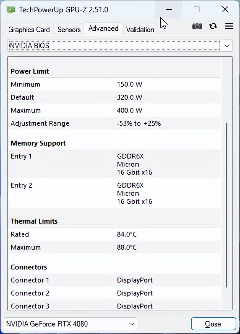 这对于非公版RTX 4080显卡来说也是一个比较标准的规格,毕竟现非公与公版显卡之间的最有差异化的地方大概就是核心频率、功耗以及用料了。